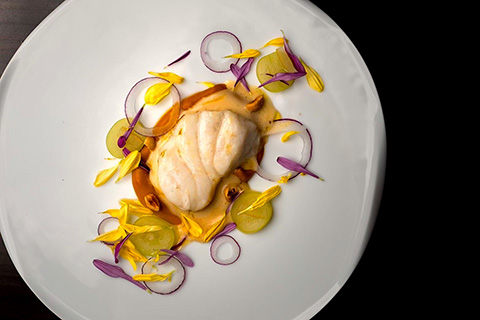 An example of a dish that pairs well with sake: a plate of butterfish cooked with whey1. It is said to pair wonderfully with the sake made using the kimoto brewing process2.