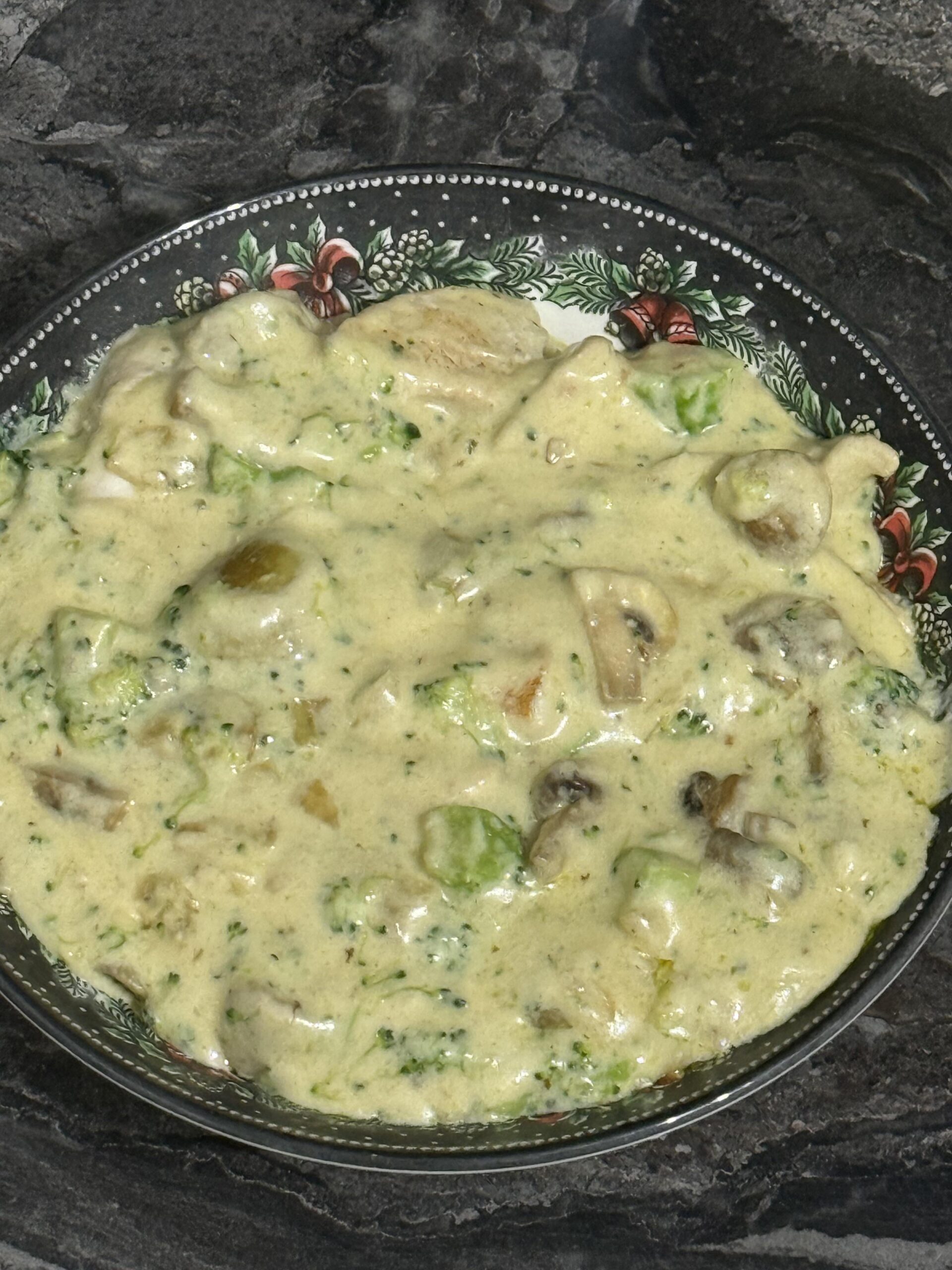 Made a creamy chicken, mushroom & broccoli skillet for dinner. Here’s what I used: