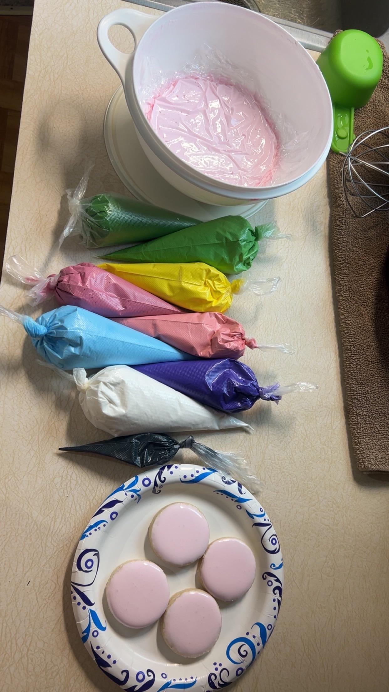 A few weeks ago I made, baked and froze over 100 cookies. Today is the start of my prep work to decorate said cookies for this weekend and let me tell you (you already know) it took me so long to make all of these colors. A little over 3 hours!