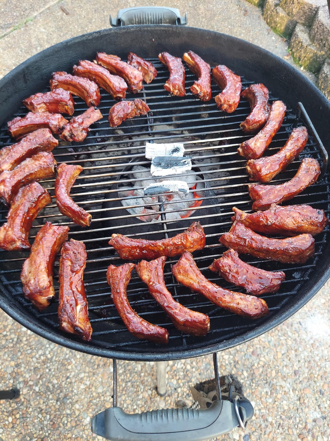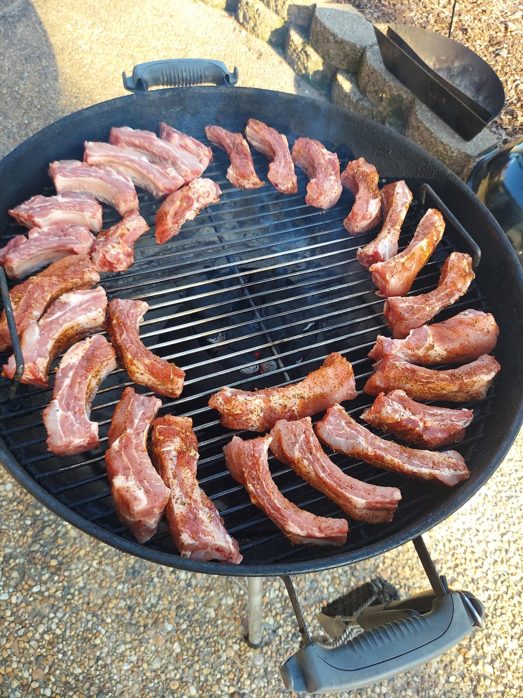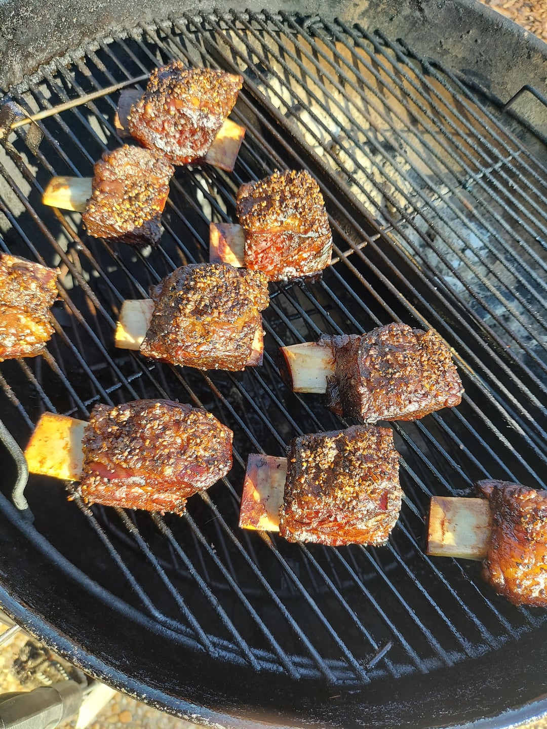 A first time for everything and I succumbed to some impulse purchases at the local warehouse club on Friday. Hot & fast vortex ribs Sat. Beef ribs and a lamb shoulder Sunday. Used Kingsford on the vortex then B&B for the two longer smokes. White oak for the beef and cherry for the lamb.