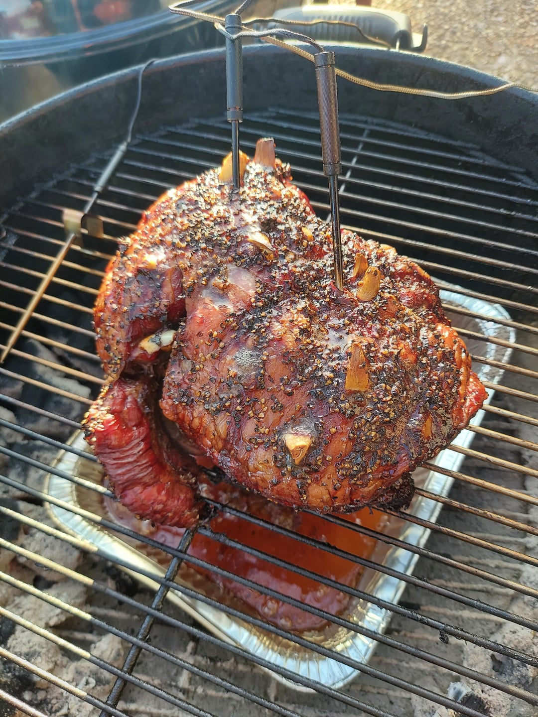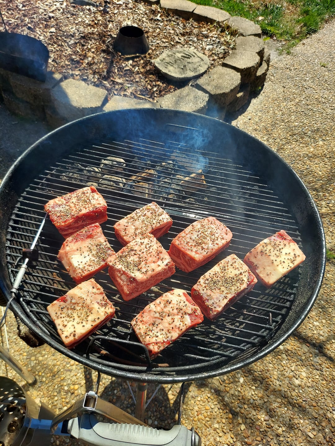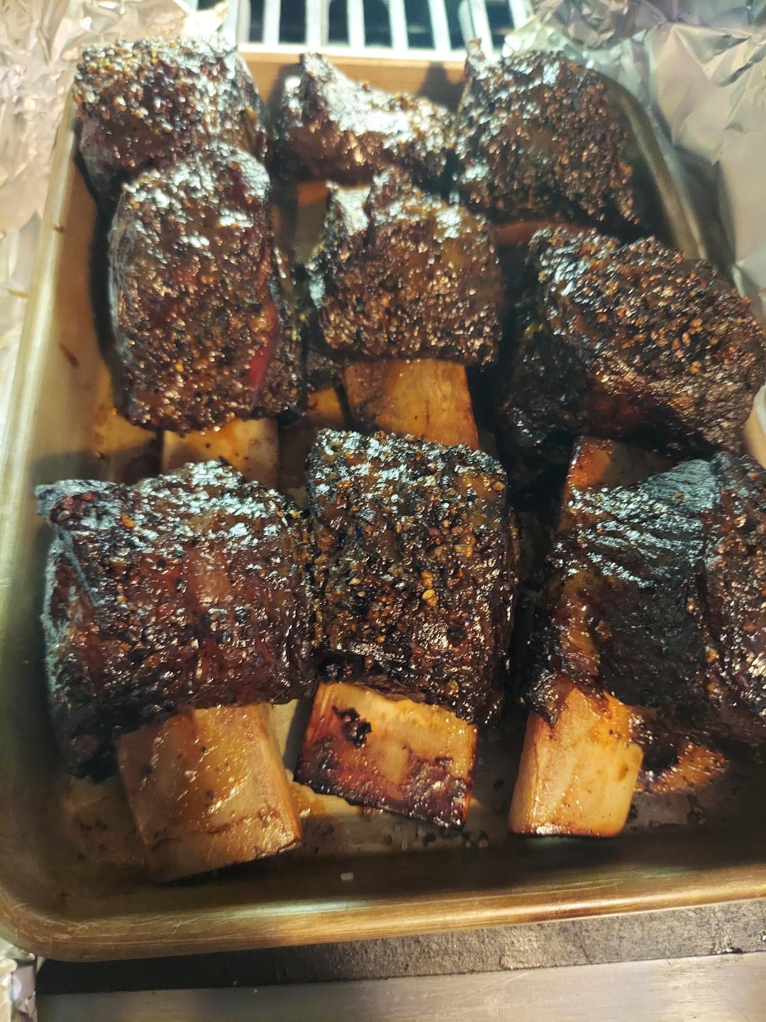 A first time for everything and I succumbed to some impulse purchases at the local warehouse club on Friday. Hot & fast vortex ribs Sat. Beef ribs and a lamb shoulder Sunday. Used Kingsford on the vortex then B&B for the two longer smokes. White oak for the beef and cherry for the lamb.