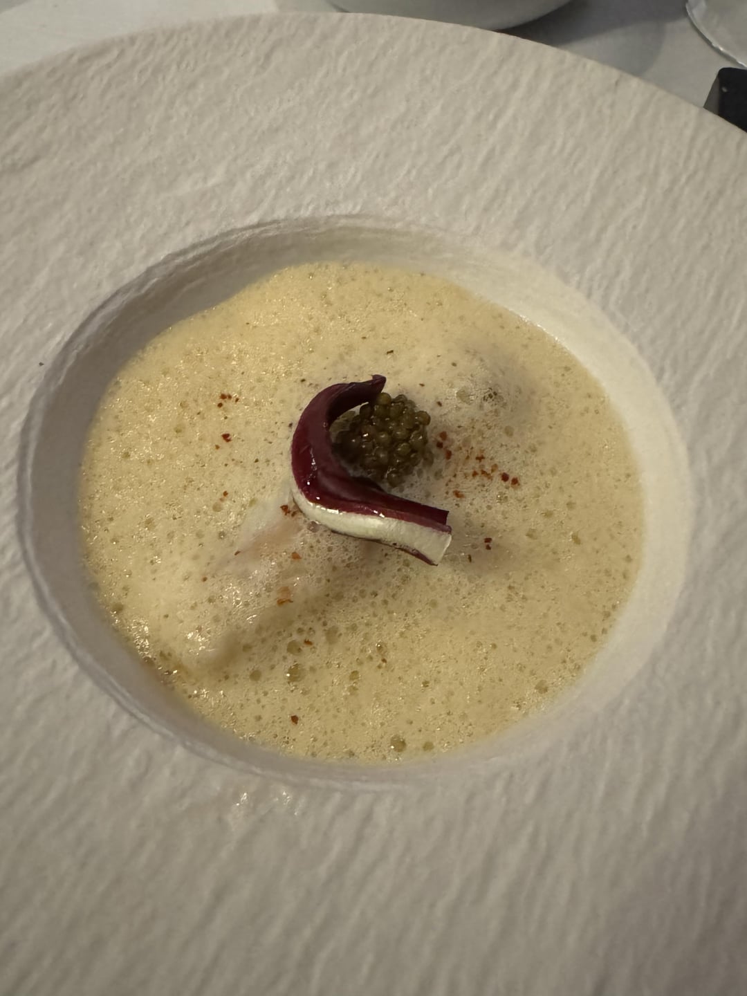 4) 3rd Course – Bream with chicory, caviar and black pepper/sea salt foam