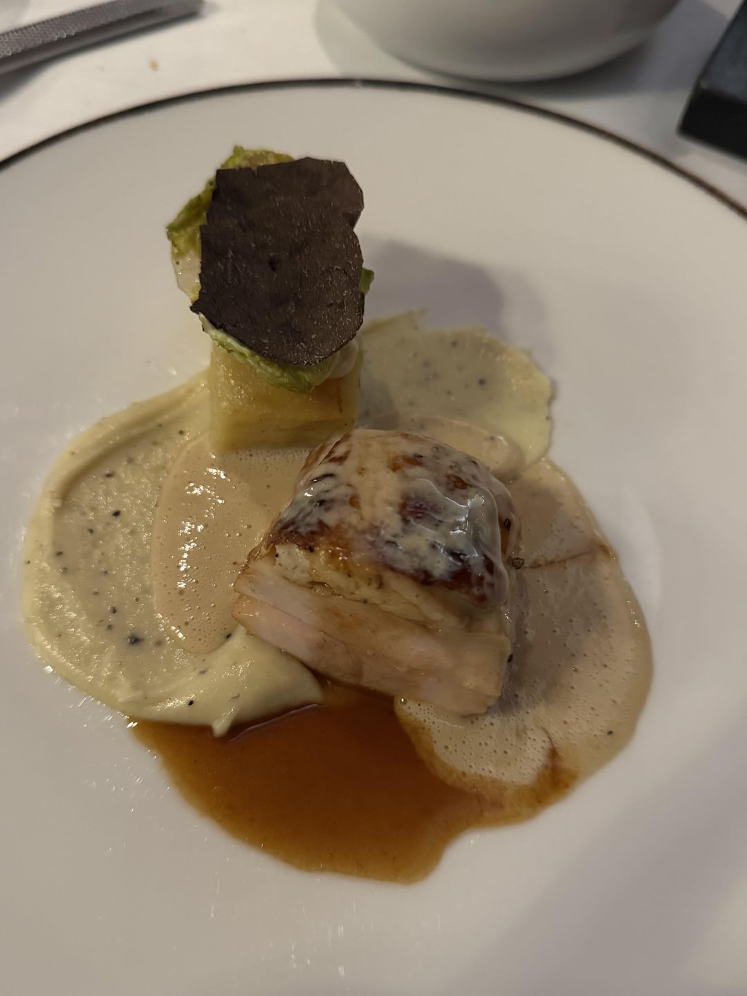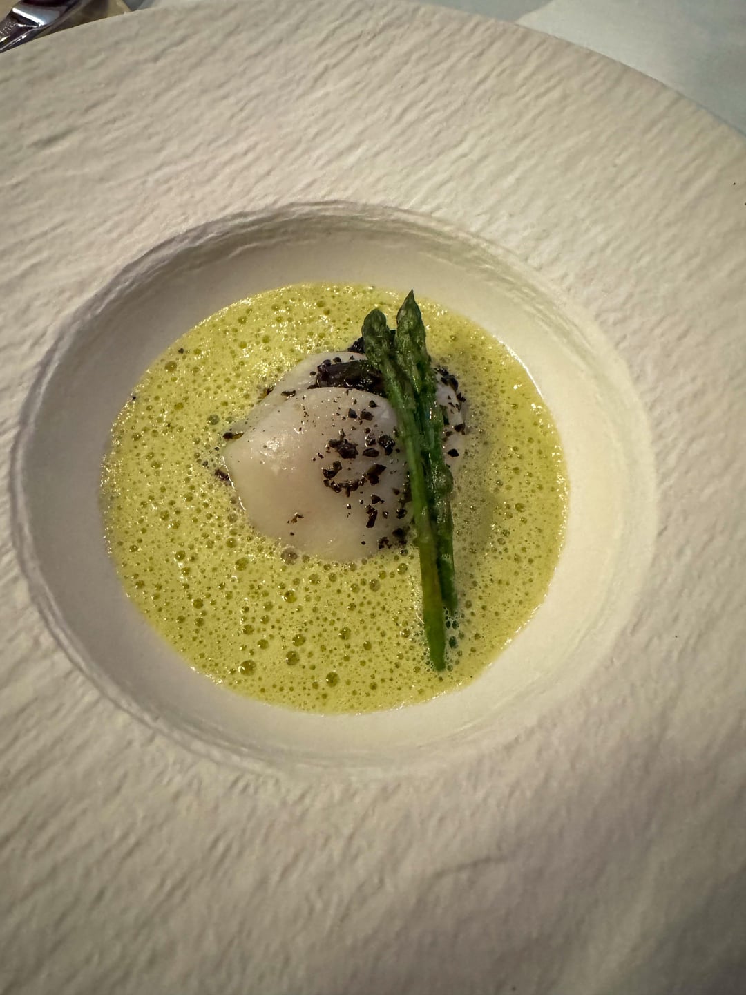 3) 2nd Course – Scallop with black truffle in asparagus foam