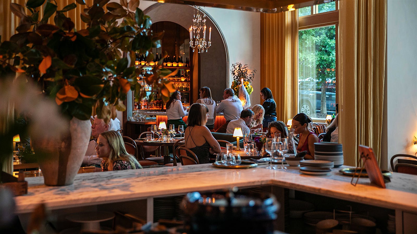 In 2022, Midtown Manhattan received a new brasserie, Monterey, from restaurateur Simon Oren and the hospitality team behind Grand Award winner Nice Matin, Best of Award of Excellence winner Marseille and Award of Excellence winners Nizza and Dagon, as well as new Best of Award of Excellence winner Isabelle’s Osteria. In Monterey, Oren, restaurant partner Dudi Sasson and designer Scott Kester have given the neighborhood a bright and colorful restaurant with terrazzo tile floors, blue banquettes and a marble bartop, recalling the “retro days of Palm Springs” and “Old Glam Hollywood.”