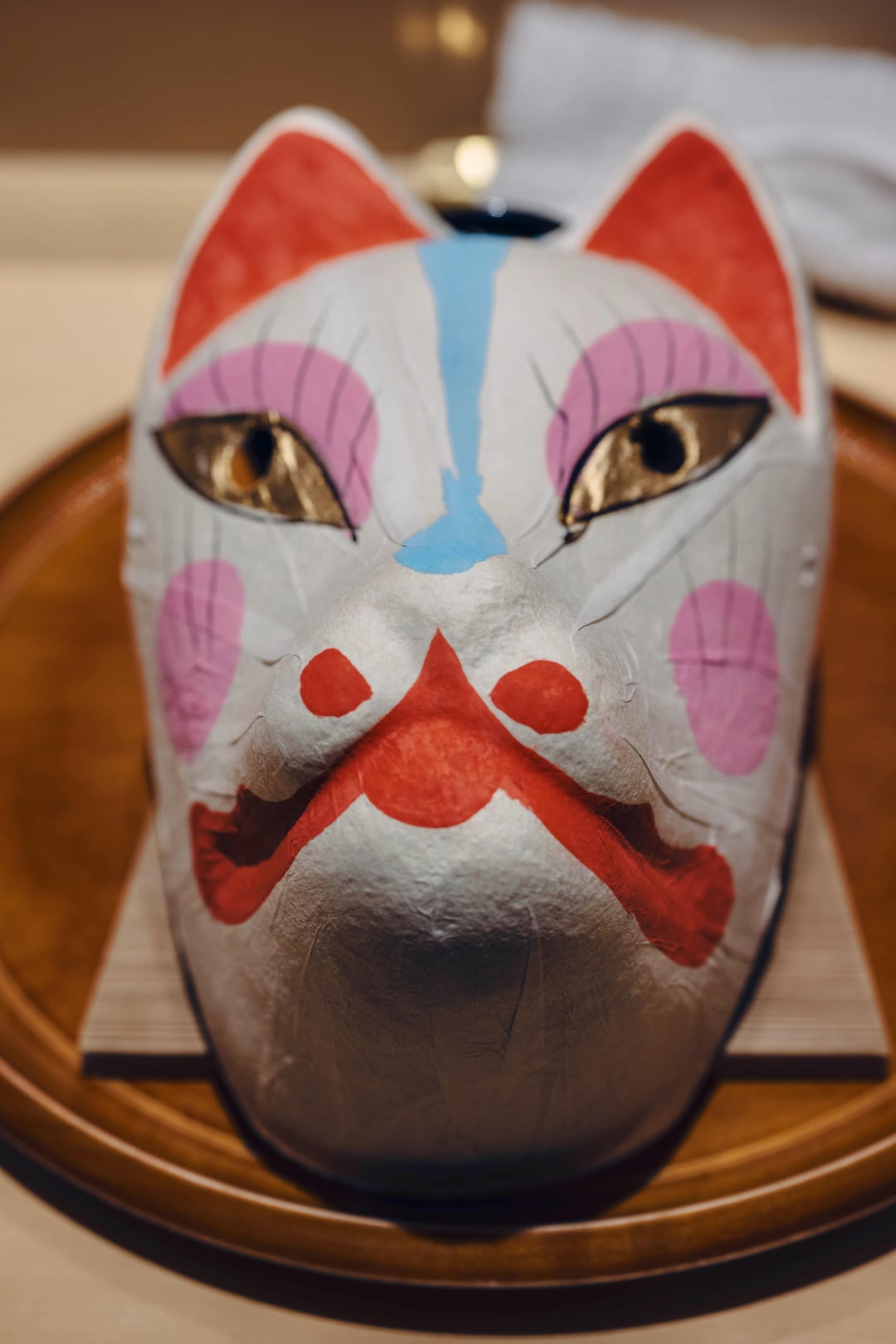 the restaurants theatrical elements was strong from the start. This dish is dedicated to the hatsu uma festival (first day of the horse) which celebrates Inari a diety for agriculture. It is customary to eat Inari on this day, paired with white miso from kyoto was really delicious. By serving Inari and using the fox mask Shinohara is trying to wish the diner good fortune.Kuruma ebi, hokigai, kazunoko (herring roe) nanohana, nikogori (jellied fish broth)