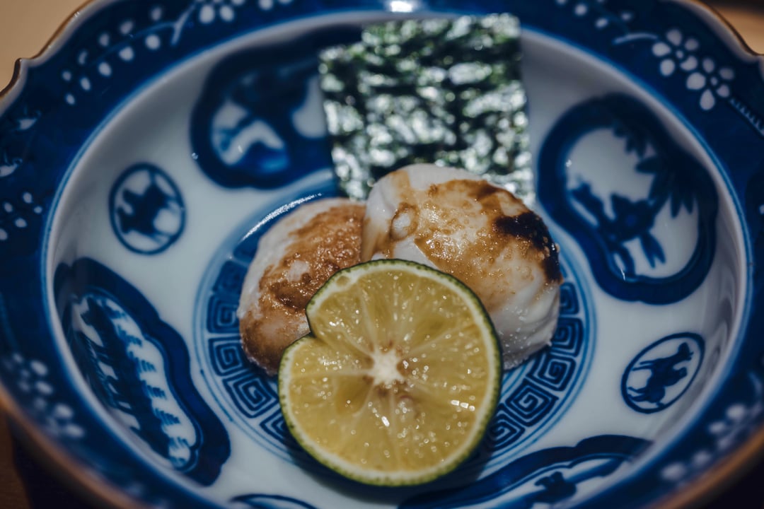 Grilled fugu shirako, eaten with lemon and nori: the shirako melts in your mouth, very creamy and mild briny/sweet flavour was delicious