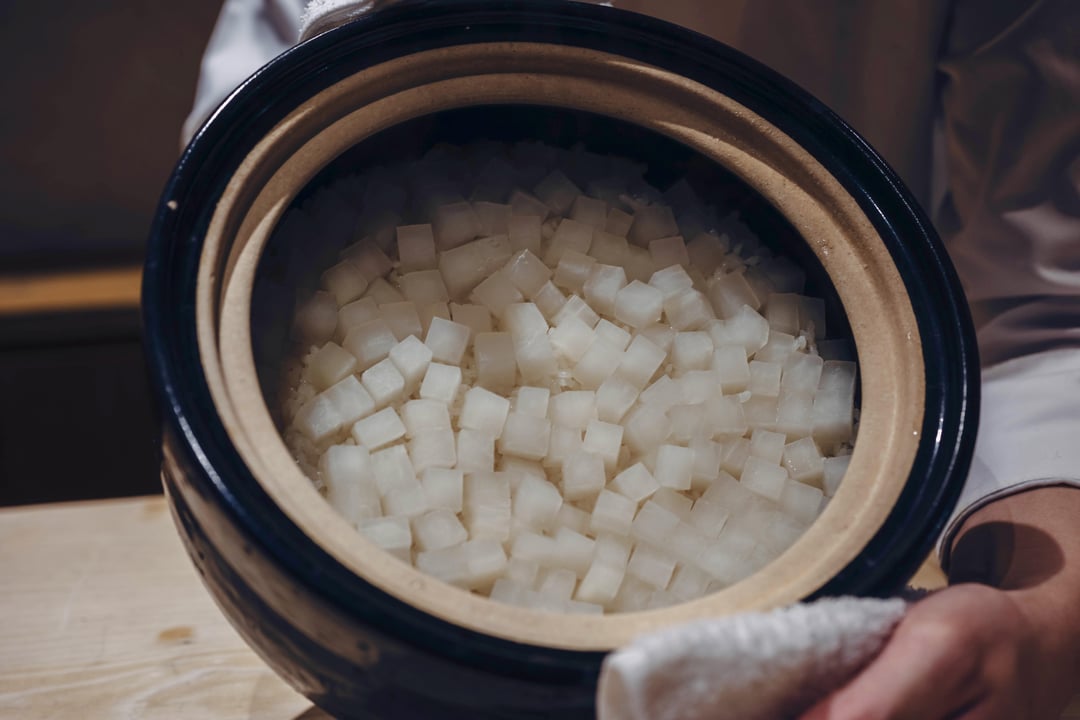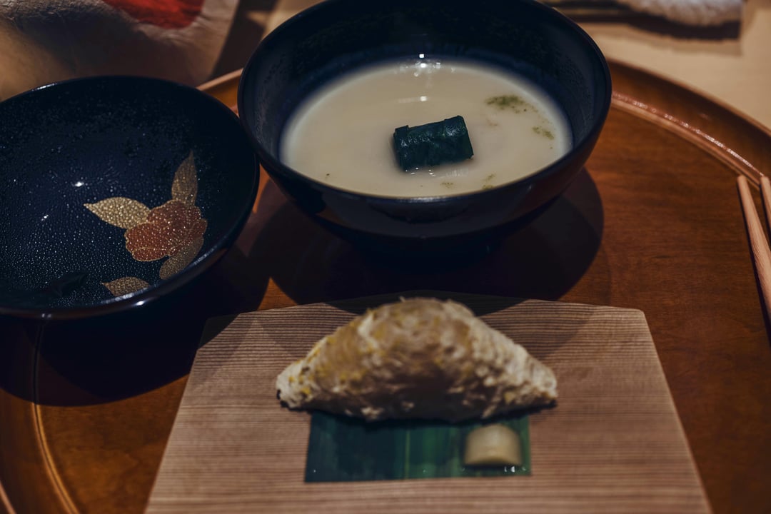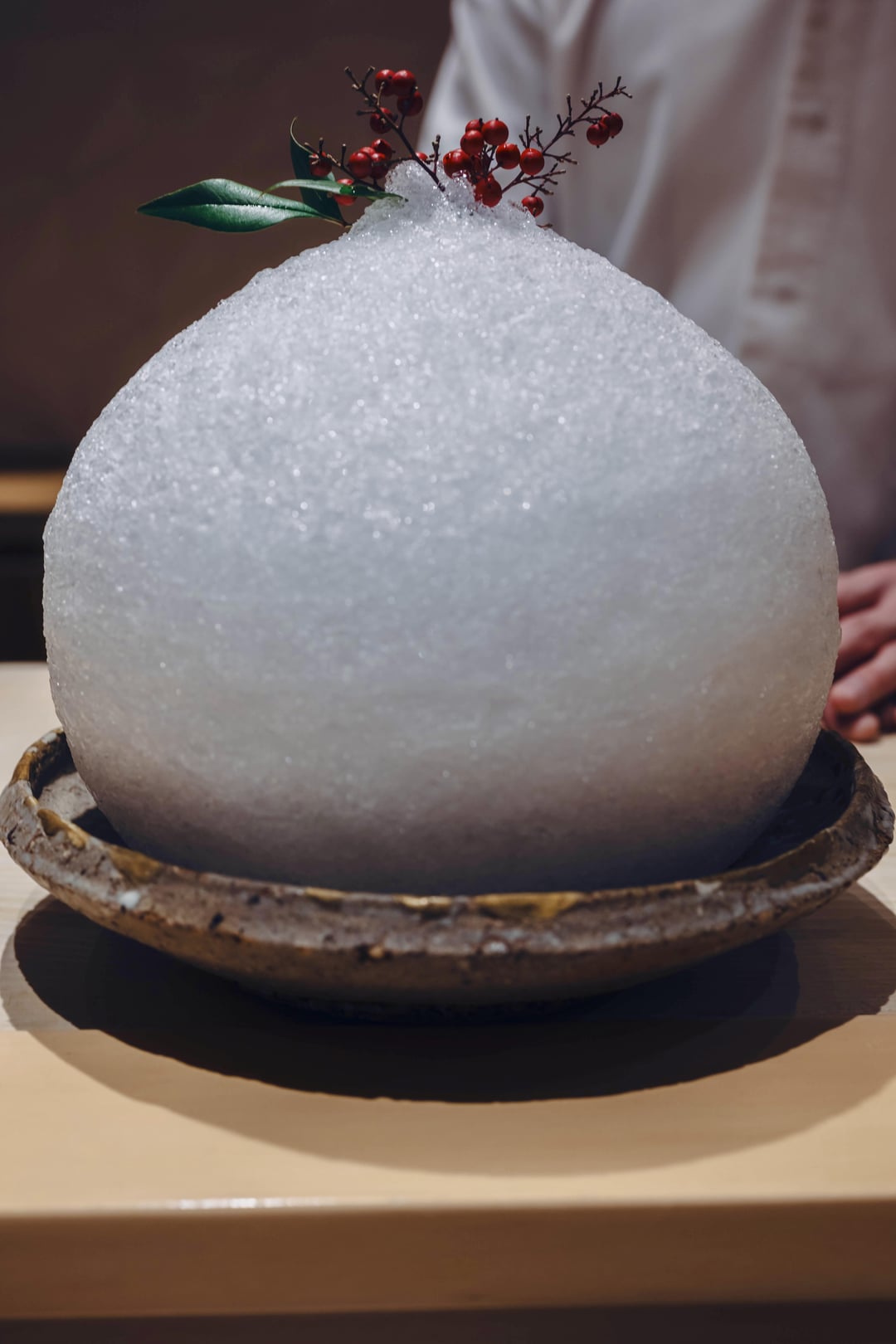 I for sure forgot something but tried my best to record down everything. Shinohara dimmed the lights and gave a brief explanation for today’s hassun. Setsubun is the day before spring and traditionally you are supposed to carry out rituals/customs to get rid of previous years misfortunes and welcome good fortune for year to come. Hiragi, iwashi and maki rolls are traditionally eaten on this day. The display was jaw-droppingly gorgeous, seeing Shinohara work on each plate with his team and fixate on the small details was awesome. The fuugu kaarage was absolutely delicious, light seasoning and wasn’t very oily. Enjoyed every element but my favourite were the Iwashi and Mizuna. My favourite course of the meal