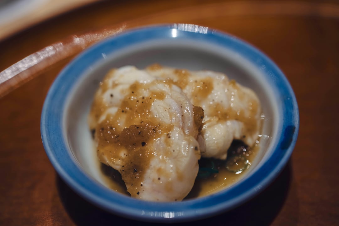 Hotpot Fugu with kashina hamaguri, kurumafu (roasted wheat gluten) and nezeri (celery root). More fugu, really nice clam broth flavour. Think its first time I’ve had kurumafu, it absorbed the broth flavour really well with a nice chew texture.