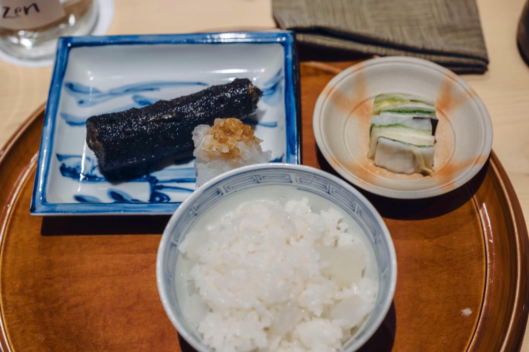 Charcoal grilled iwashi, daikon donabe, red miso soup, pickles. They deboned the Iwashi which was great, really fragrant and cooked nicely. They used Koka rice from Shiga, the daikon was subtly sweet and tender but would have preferred something with a bit more texture contrast. Still tasted great but left wanting more from rice component.