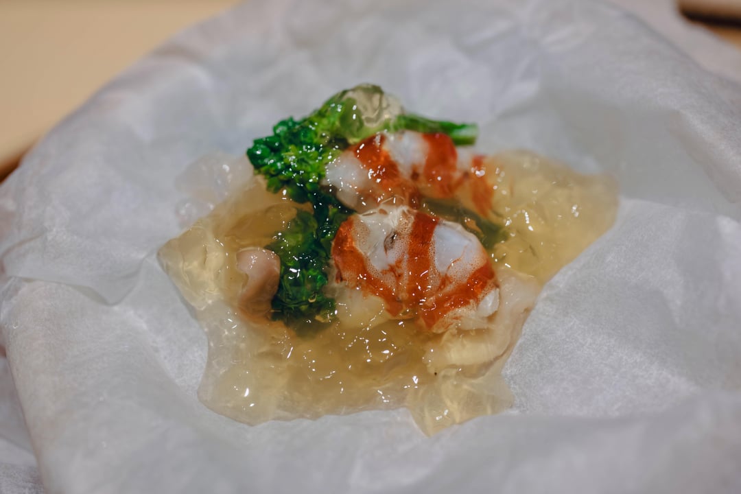 The ebi was stores inside a giant snow globe, they break through the ice to show the diners the ebi. Kind of like finding treasure after breaking through mountains of snow. The ebi was plump and very sweet, kazunoko salt and savoury flavour was good and mixed well with the nikogori for a refreshing dish. Kazunoko also symbolises prosperity.