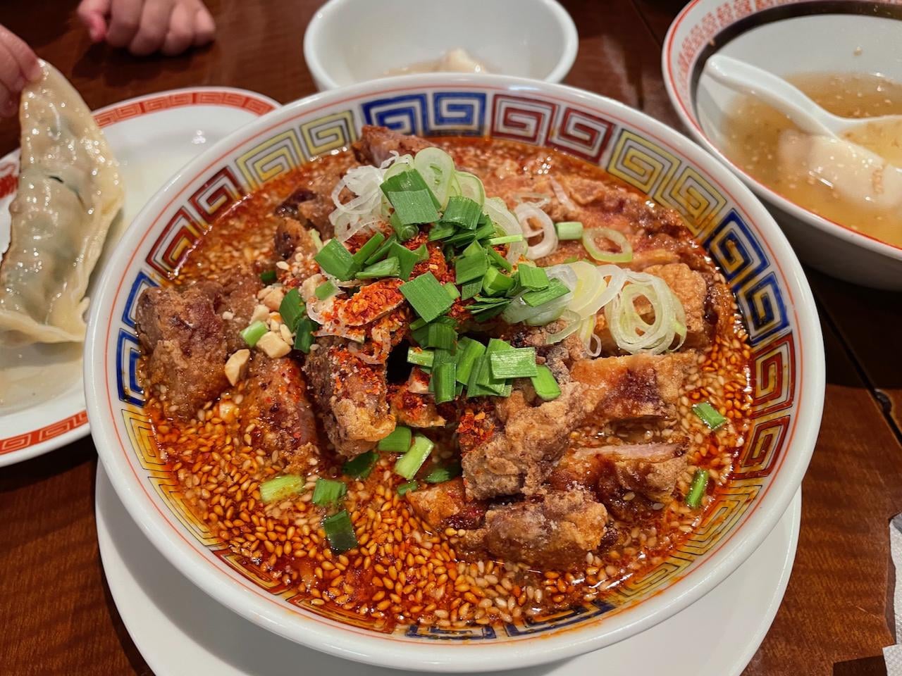 The gyoza place had some pretty good gyozas. But this spicy tantan or dandan noodles was a sleeper hit. Incredible depth of flavor for a chain. The chicken was crispy. It was spicy, but not that spicy since its Japan. Fire didnt come out of me the next day.