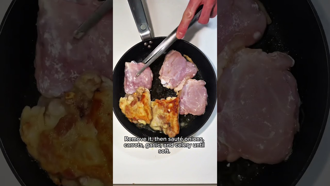 Pollo alla Cacciatora in Bianco – a rustic Italian dish with deep, rich flavors! Tender chicken, slow-cooked with white wine, fresh herbs, and Taggiasca olives. No tomatoes—just pure, aromatic goodness. Would you try this?