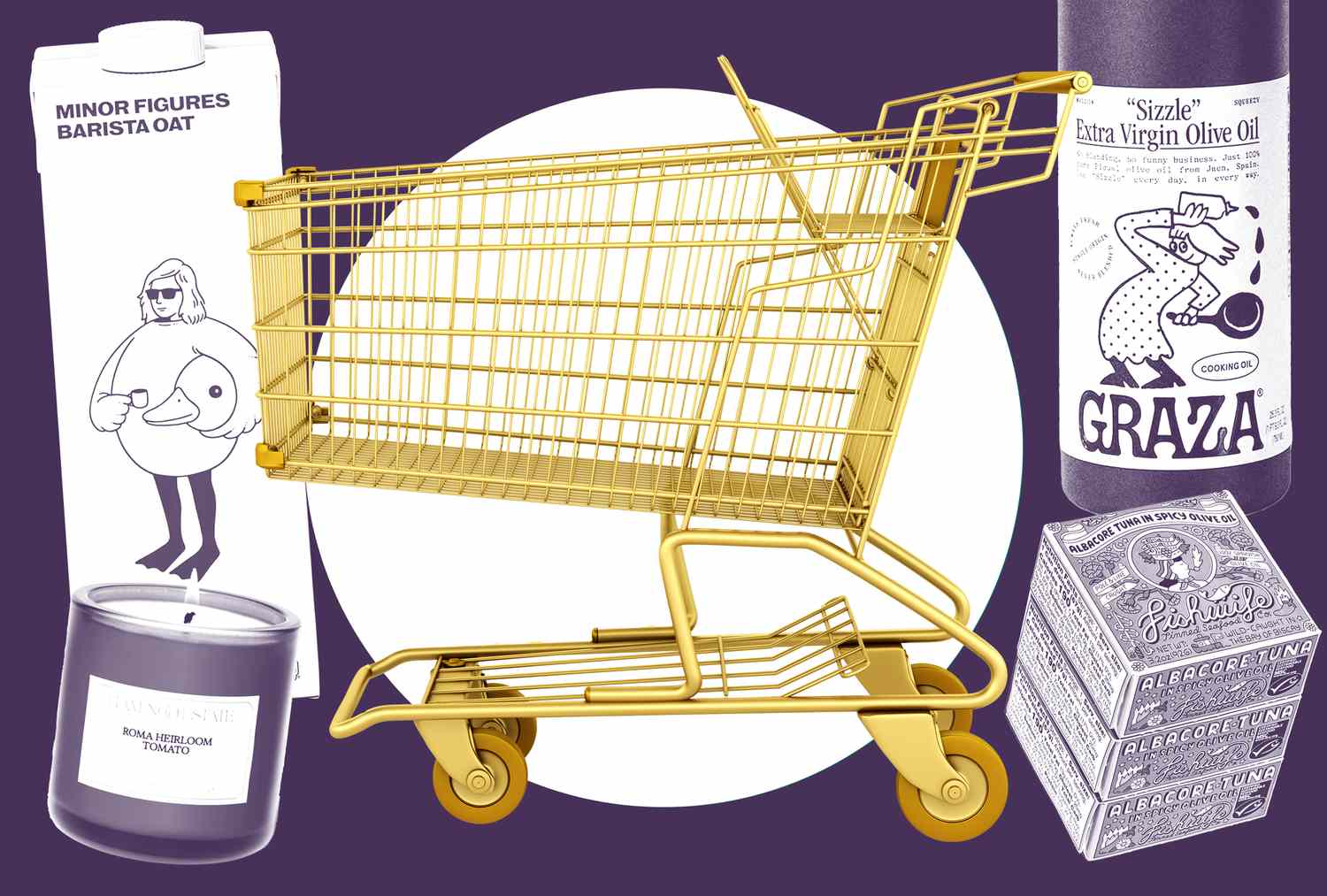 Quirky cartoons sip coffee on oat milk cartons and smoke pipes on boxes of tinned fish. Of course I would want olive oil for “cozy days and slow nights,” as the $37 Brightland entices on its minimalist bottle with a gold pour spout.