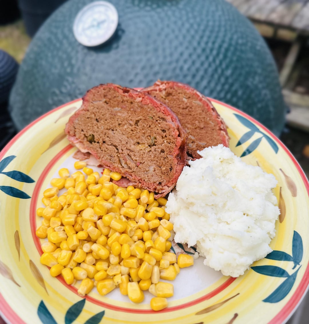 Bacon Wrapped Meatloaf, that is. With the only appropriate trimmings. Nailed this cook.