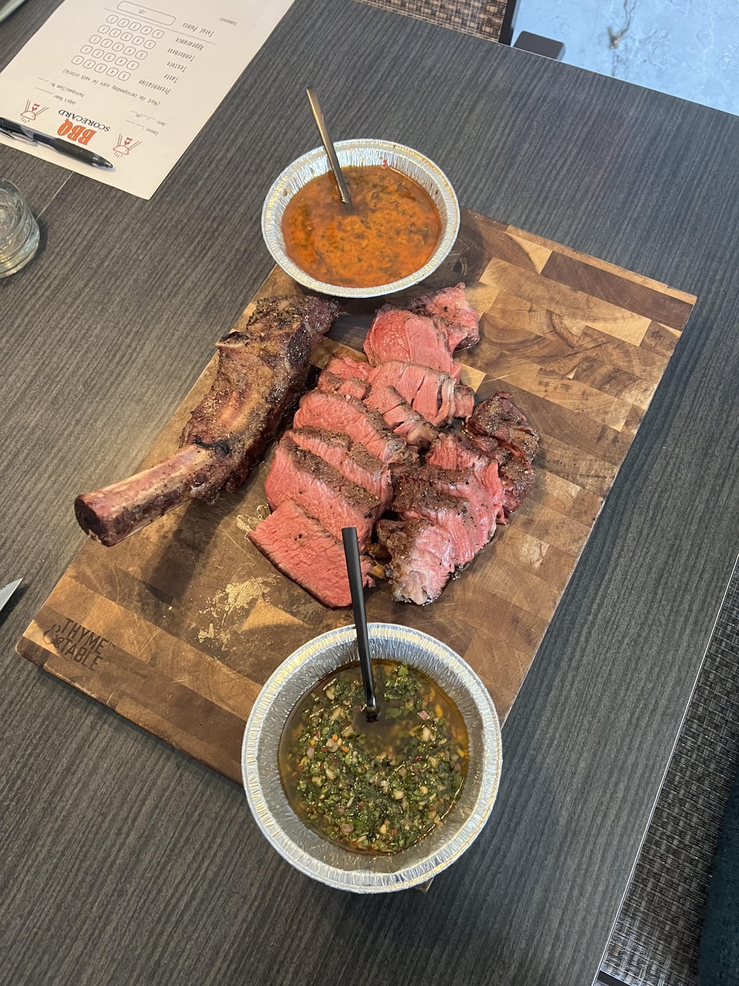Sauces for mine were a chimichurri & a cowboy butter dipping sauce.