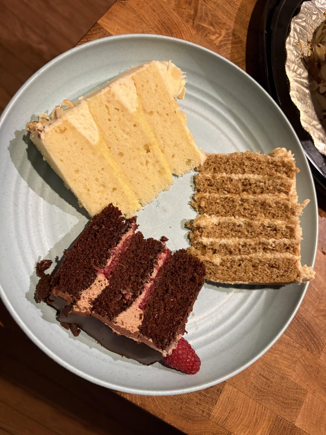 Ooh. They all look so tempting. Gin to my head, I’d probably go for the almond sponge first. Just a small piece, though. I’d have to save room for the others. Lucky bestie!