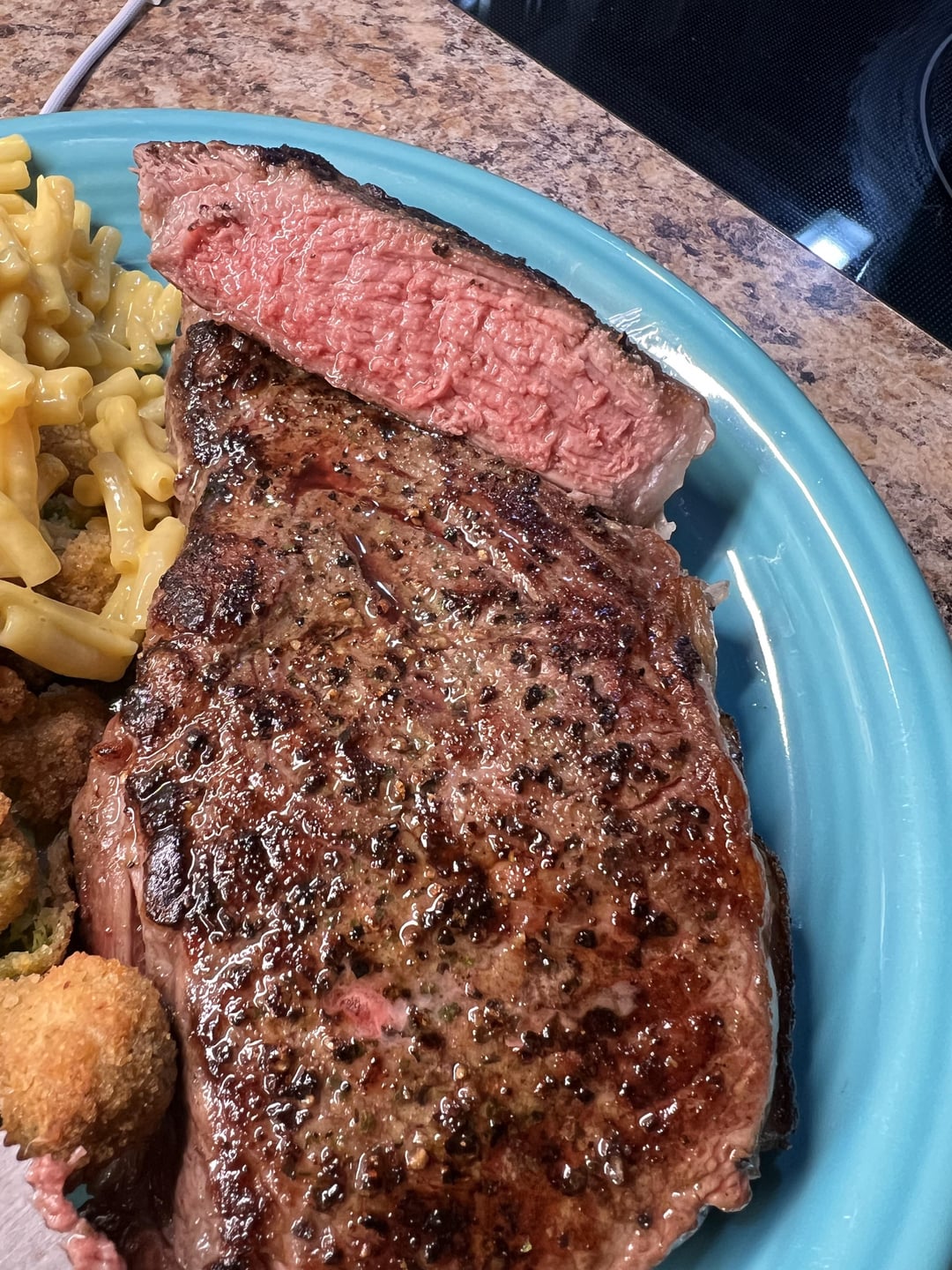 Had a NY strip in the freezer to cook up for dinner while the fiancé wanted leftovers. First time I tried reverse, it was good, but not THIS good. Put a little more effort into it and now it’s the next day and I’m craving more steak.