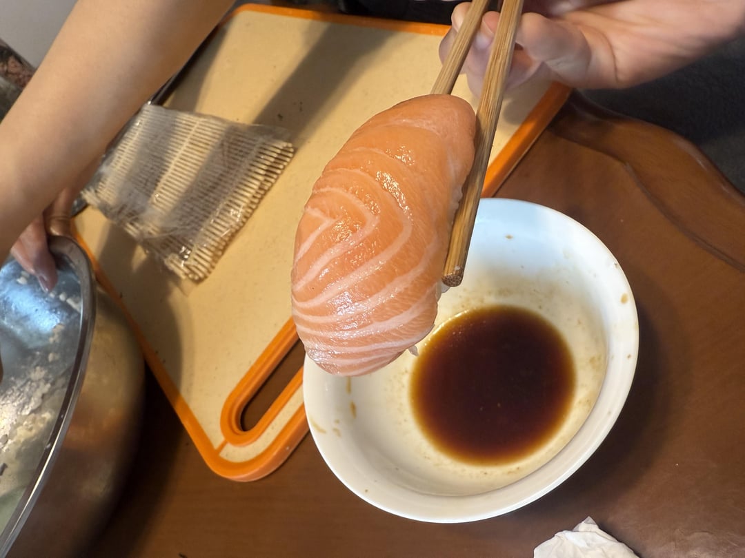 Nice and thick cuts of the salmon for the maki. Check my post how much space I leave at the top of the sheet before I roll it as this will make a nicer roll.