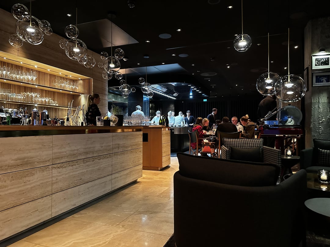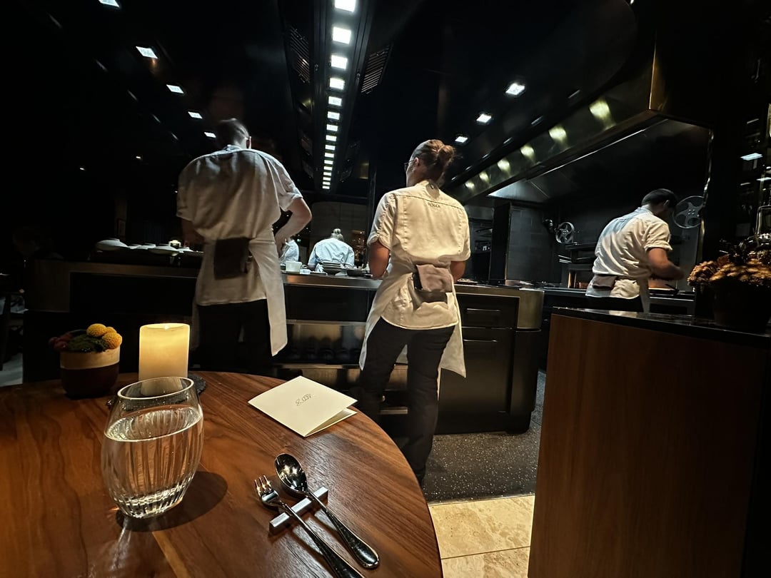 Re-Naa has a beautiful dining room, with about 10 tables surrounding a massive open kitchen. Upon my arrival, I was greeted warmly by Torill Renaa, who leads the restaurant alongside Chef Sven Erik Renaa. I was first led to a comfortable lounge area (pic #1) facing the long bar where I had the small bites along with a glass of champagne that one of the Somms recommended (it was excellent!). Post the smaller bites, I was led to my seat in the corner of the dining room (pic #3) that faced the open kitchen. This felt like their version of a kitchen table without explicitly calling it one and for a solo diner, is an excellent seating choice to enjoy the performance of the kitchen as they progressed through the evening between the different stations. One thing I appreciated about the restaurant – the open kitchen is fairly large, which limits the amount of seating space around it. Some places might have chosen to cramp the room with tables to increase volume but the tables at Re-Naa are well spaced out. When I entered the restaurant and glanced at the room, I wondered if the evening might end up feeling too loud, but it did not pan out that way in the slightest. Regardless of where you are seated in the restaurant, you are sure to have a reasonably good view of the performance in the kitchen but also be able to enjoy the intimacy of your own table.