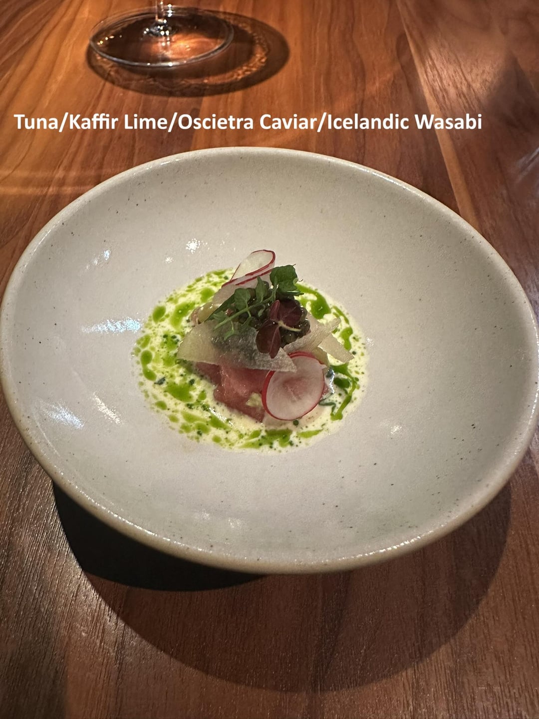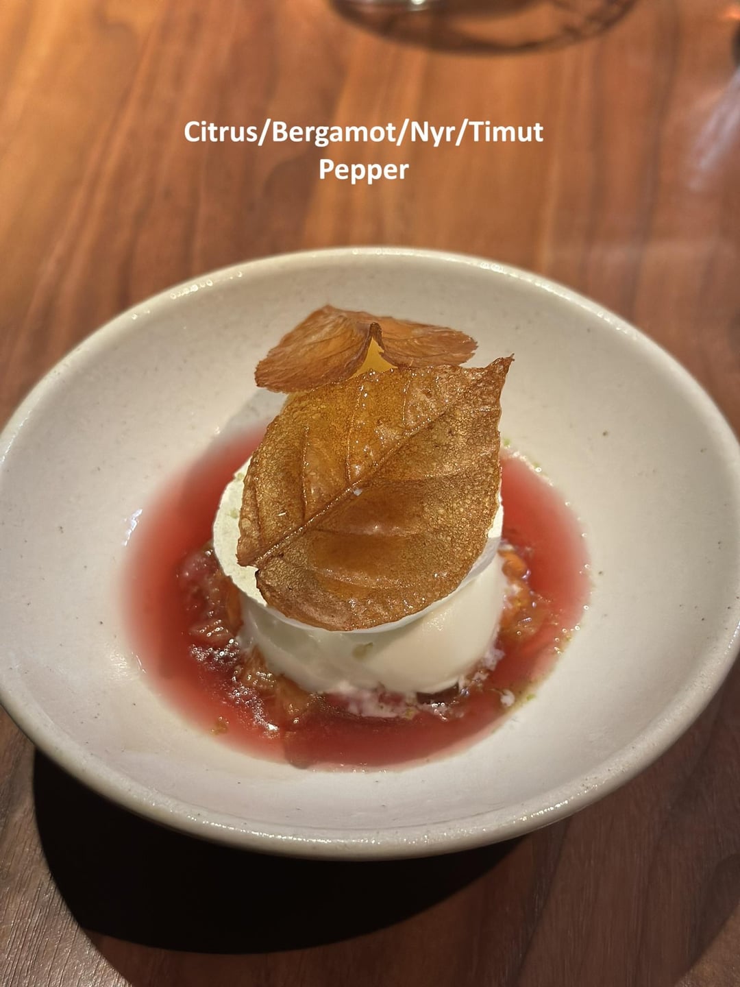 The staff really shines with their hospitality. The sharpest dressed crew I’ve seen at a restaurant and professional but incredibly friendly and approachable in their demeanor. Chef Erik also walked around the restaurant, spending time at each table. He just seems like a really nice guy, and asked me about my trip and food recommendations in Chicago. The somms were polished when describing each pairing and of all the restaurants I visited on this trip, I found that they spent the longest amount of time here explaining the wines, the winemaking process and intention behind each pairing. As someone just learning about wine, I found this very enjoyable but for someone who isn’t as interested in details of their glass, I could see it being a drag. The crew here seems very perceptive though and I bet would attenuate their spiel based on the audience in front of them. As the night progressed, I felt like I got on extremely well with each of the staff that tended to me. While the wine may have had something to do with it, the ease I felt here because of their warmth was on par with my experiences at Jordnær and Kadeau earlier in the week.