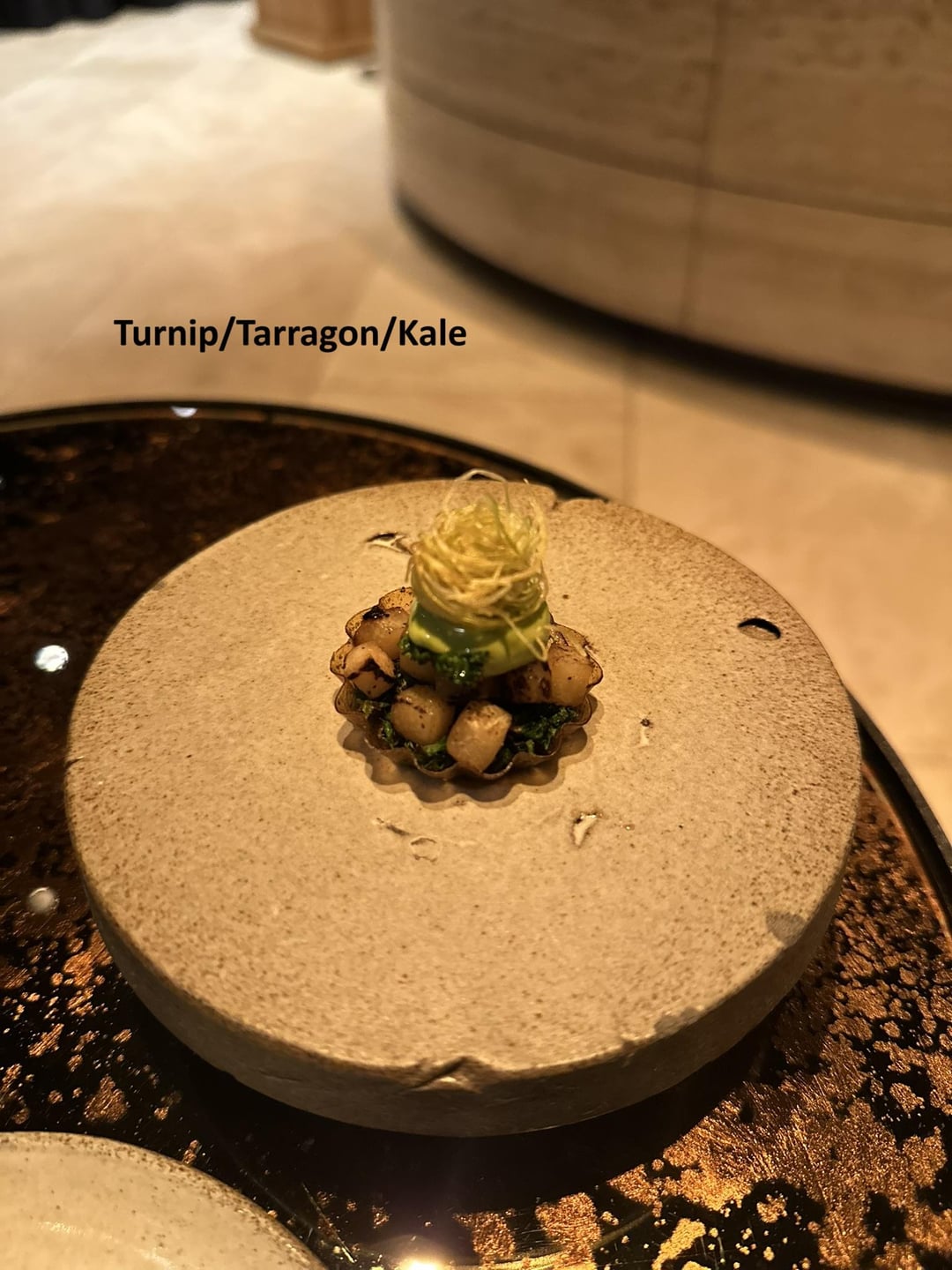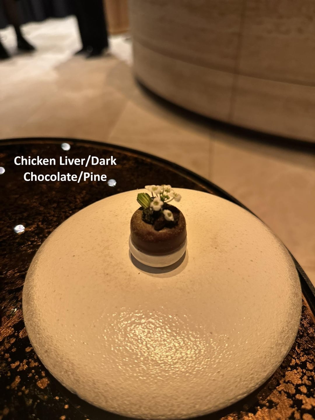 1) Chicken liver/Dark chocolate/Pine – this is the last of the small bites and was a delightful sweet and savory chicken liver combination presented in macaron form and who doesn’t love a good macaron. Beautifully smooth pate’ with a slight herbaceous note and excellent texture from the macaron.