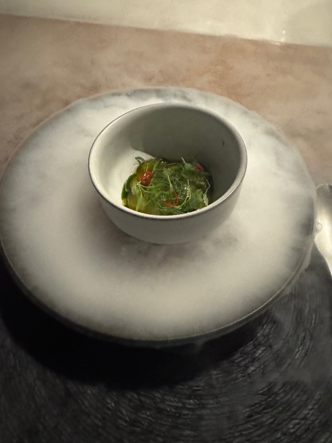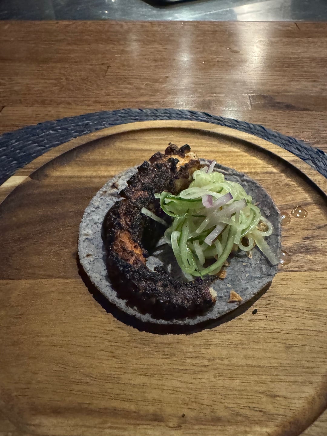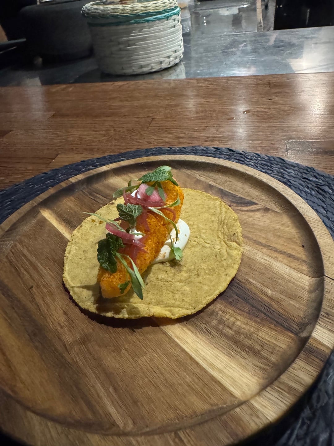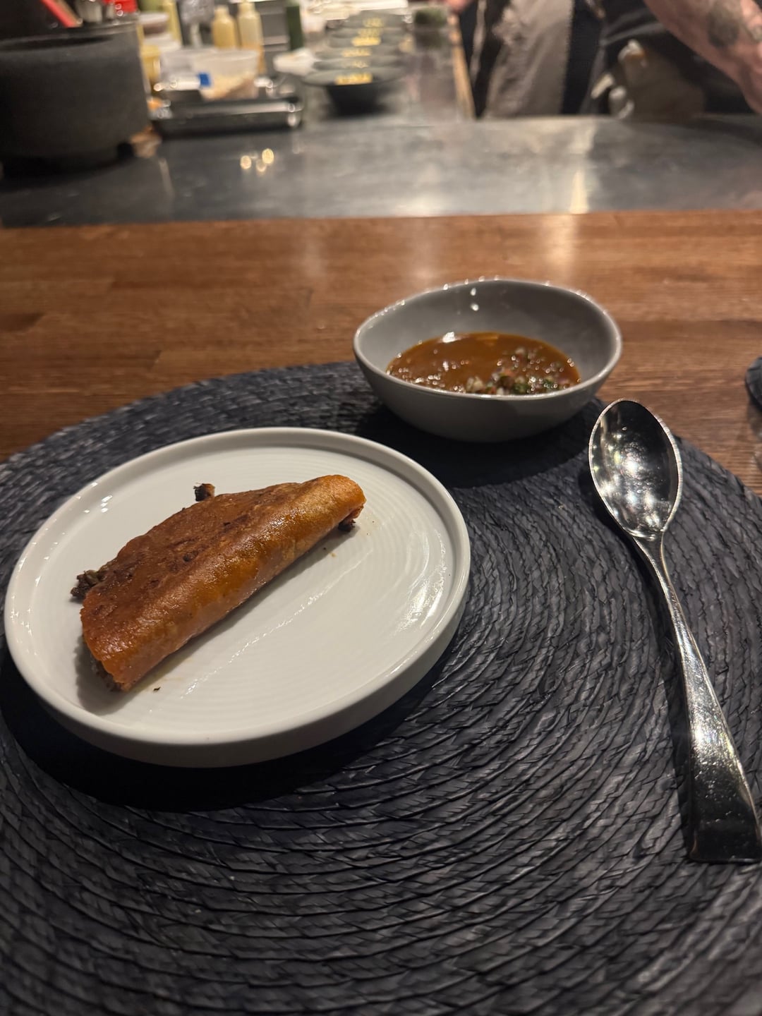 In a nutshell each chef creates 6 dishes, Indienne creates a menu and then sends to Carino to riff off of or to chose something to compliment the courses they are doing. A few of the highlights for me: Indienne: Indian Birrieria, incredible, Indian flavors in the birrieria. Carino: Indian flavored masa, shrimp taco. Carino: Suadero, deep fried.