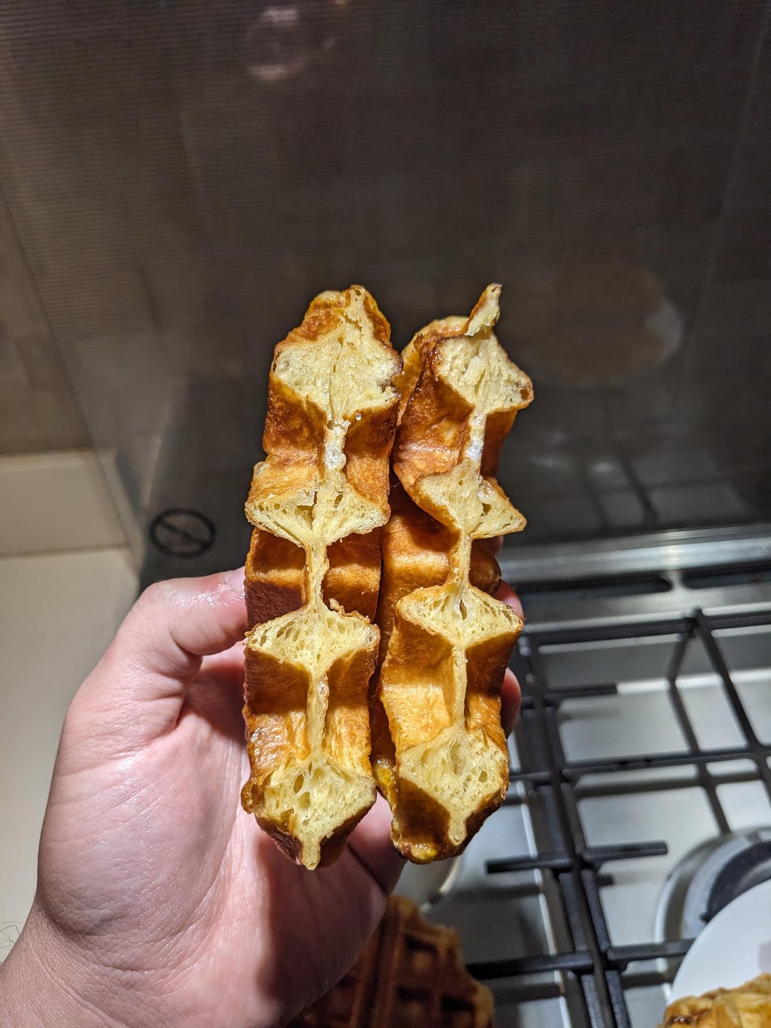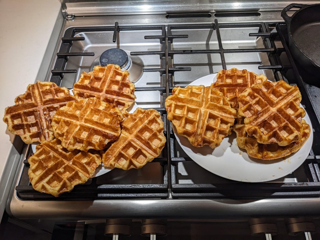 Wife wanted me to make some waffles so I made them from enriched dough with pearl sugar. She said that's nothing like what she expected.