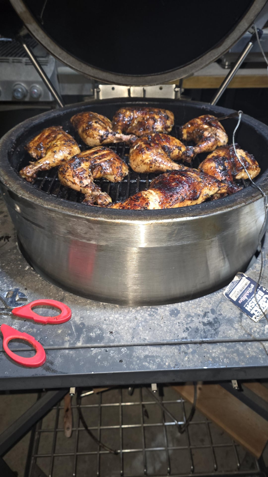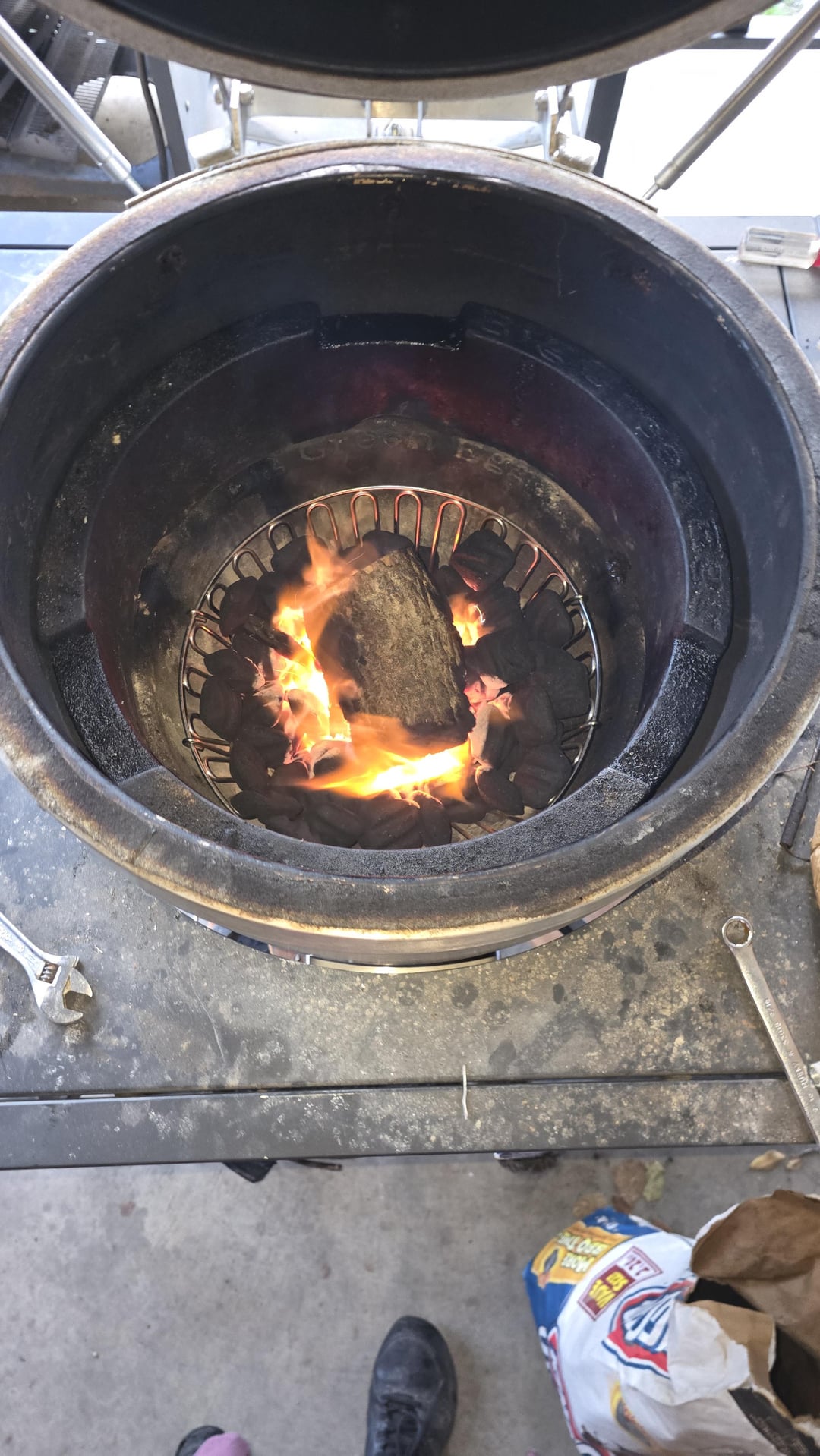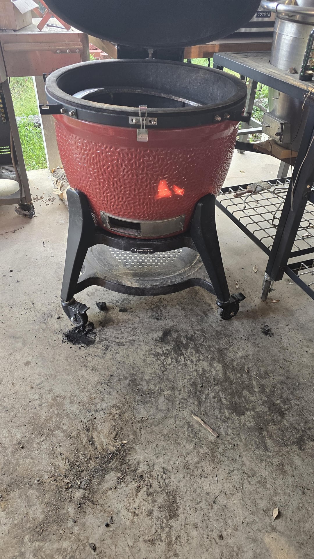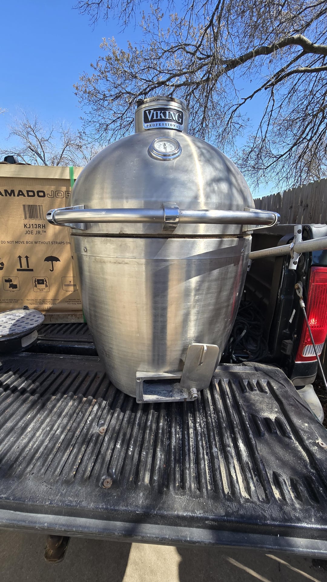 Picked up a big joe stand for 50 bucks off of Facebook marketplace. Someone mentioned in my past post that I may have had a smaller stand than the big joe, I think they were right. Anyway I got the joe set in it and looks great 👍. Question, I am looking at getting a charcoal basket, go joe or aftermarket or something else? And I know that this is a kamado Joe group, don't get mad I put a few pictures of my Viking. Later guys 👦