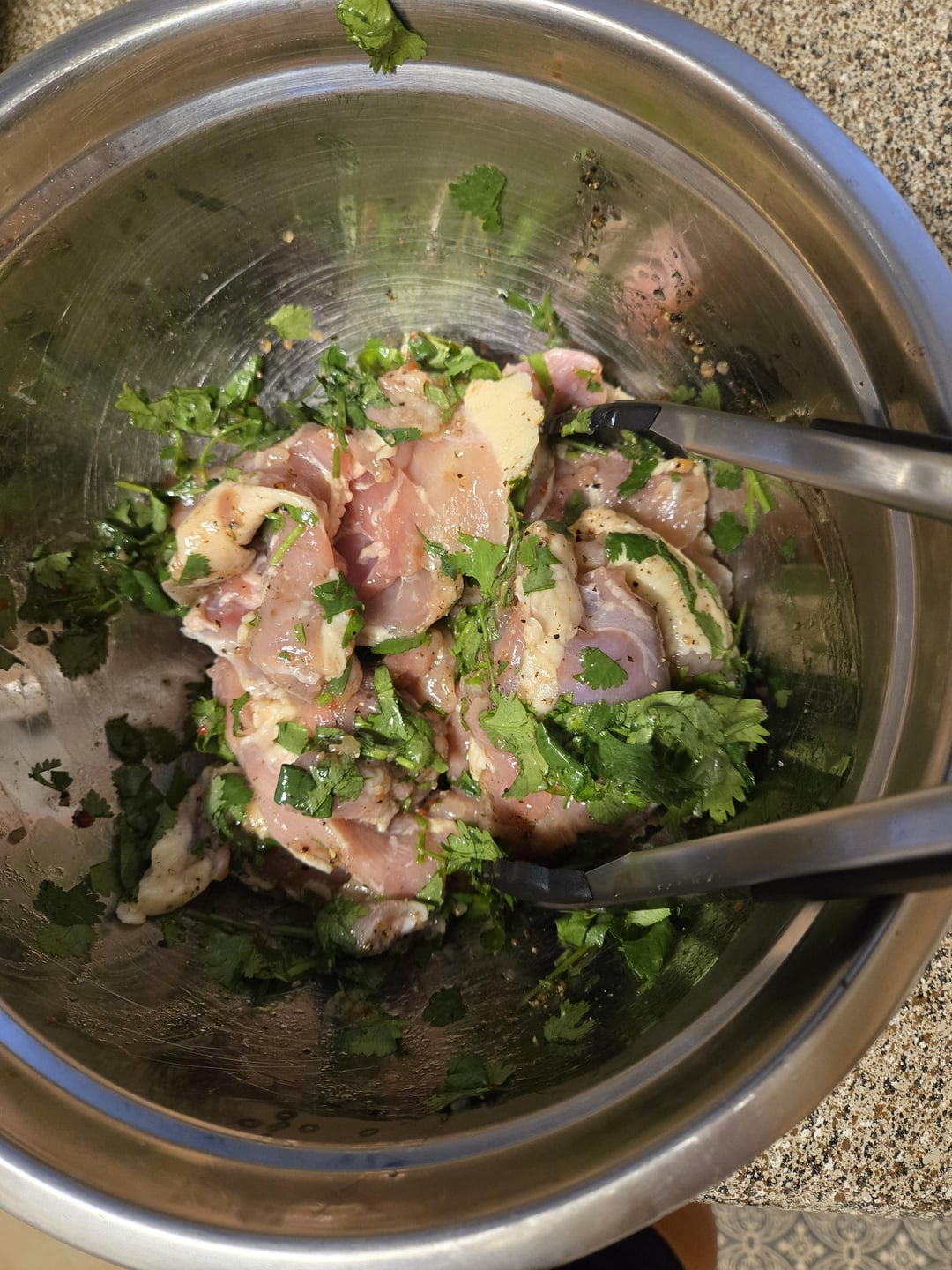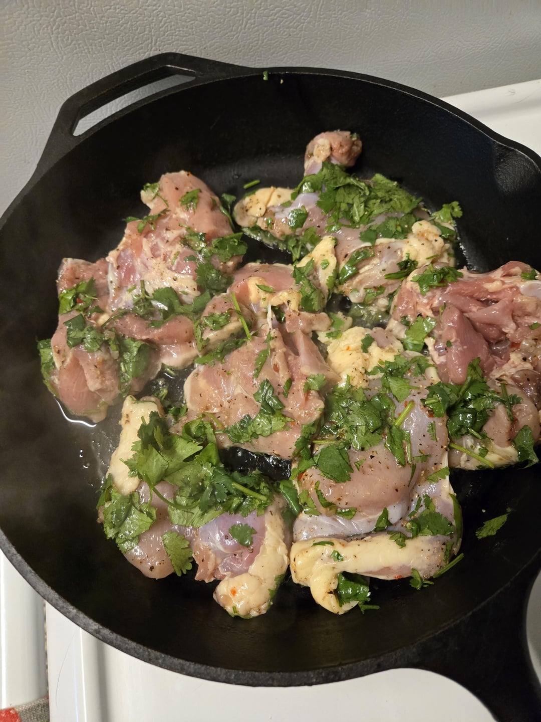 Marinate chicken in wishbone dressing and salt and pepper and chopped cilantro.