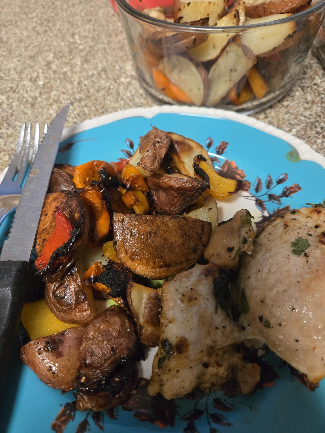Chicken has been on sale for about $6. Peppers $4. Potatoes $2. Cilantro. 50.