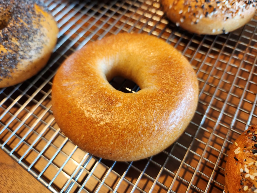 The two attempts I made tasted great but the wrinkles from rolling them out persisted through the rise, boil, and bake.
