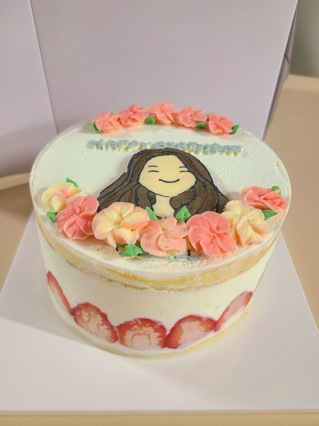 The layered cream is heavy cream with 38% fat, which we call fresh cream here. The flowers and the girl are made with buttercream. I have to admit that it is sooo much fun!