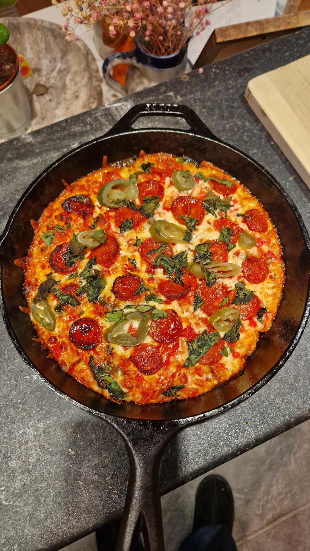 Made kenji’s cast iron pizza today…. Proofed for three days instead of one, and used frying pan / grill method by luke5721 10 Comments Either-Couple7606 7 months ago You put this thing together and it’s noice. Touché. moldibread 7 months ago tasty looking. xbleeple 7 months ago Are you using an expandable steamer basket as a cooling rack? Watt_About 7 months ago That crust looks superb. yemKeuchlyFarley 7 months ago Bottom looks banging Advanced_Show9555 7 months ago Nice color BigRoutan69 7 months ago Looks stupid good osuaviator 7 months ago Mind sharing the recipe? Fragrant_Pirate_2126 7 months ago Gimme a slice plz Internal_Gur_4268 7 months ago Good God this looks scrumptiousWrite A CommentYou must be logged in to post a comment.