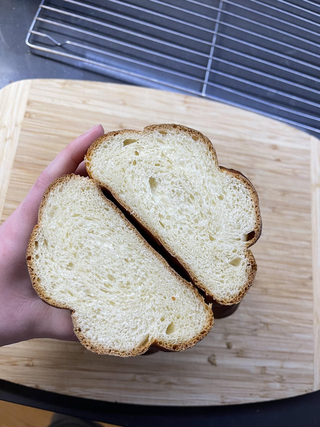 The first one is a 4 strand braid, cut after being out of the oven for about 20 minutes, the second one is a 6 strand braid, cut the next day. I used the same recipe as last time, but I remembered the final rise this time, and I added more egg wash halfway through baking to avoid the dry bits. Turned out great, but less sweet than the previous batch, will definitely keep making it and experimenting to get the best result I can!
