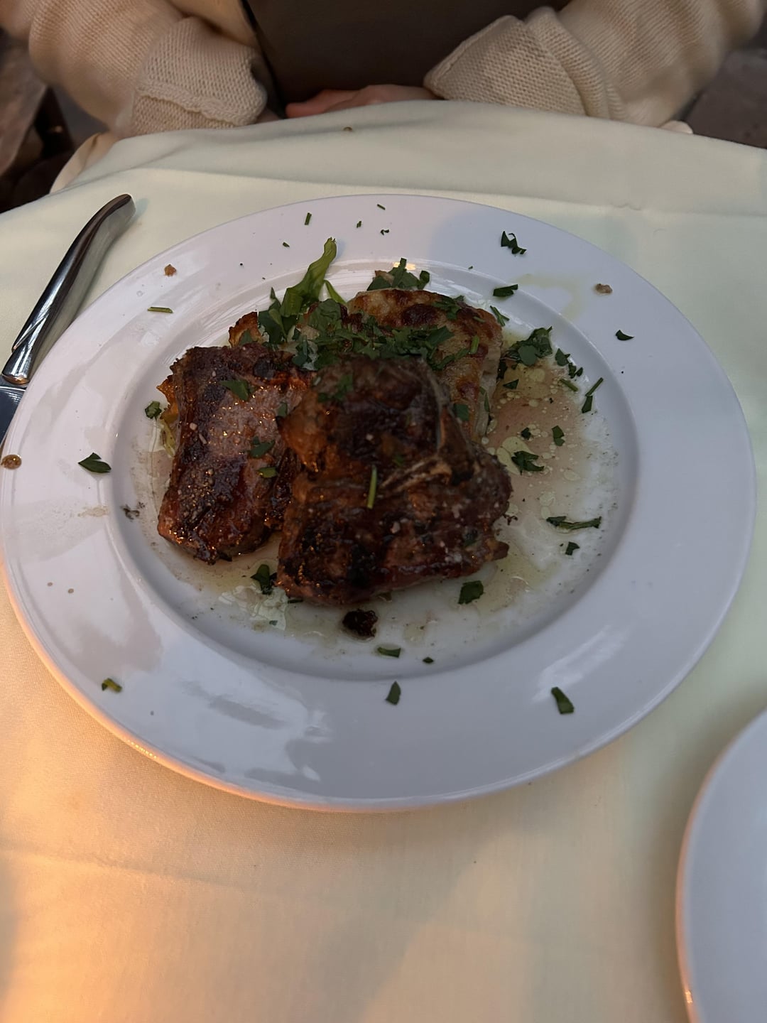 Honestly both the mains were our least favorite. This is the lamb, which was good but not as good as the pasta. The potatoes had a hint of nutmeg which paired really well with the lamb and wasn't too overpowering. Cooked really well.