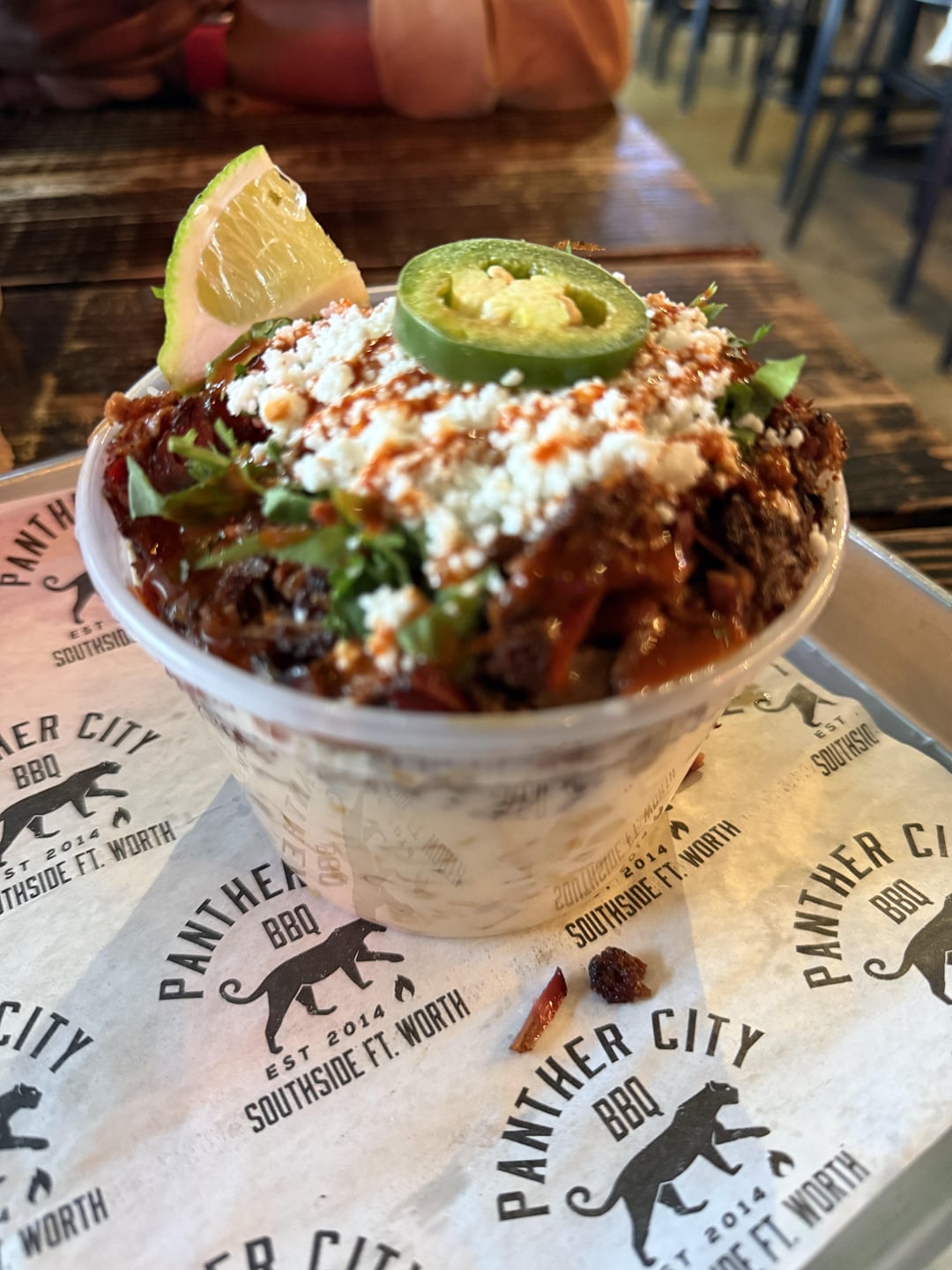 Panther City BBQ – Showed up late so the only meat left was brisket, but it still impressed. Super moist, great smoke flavor, and killer bark. Ordered it on their elote, which was a genius move. Definitely want to go back and sample the full menu.