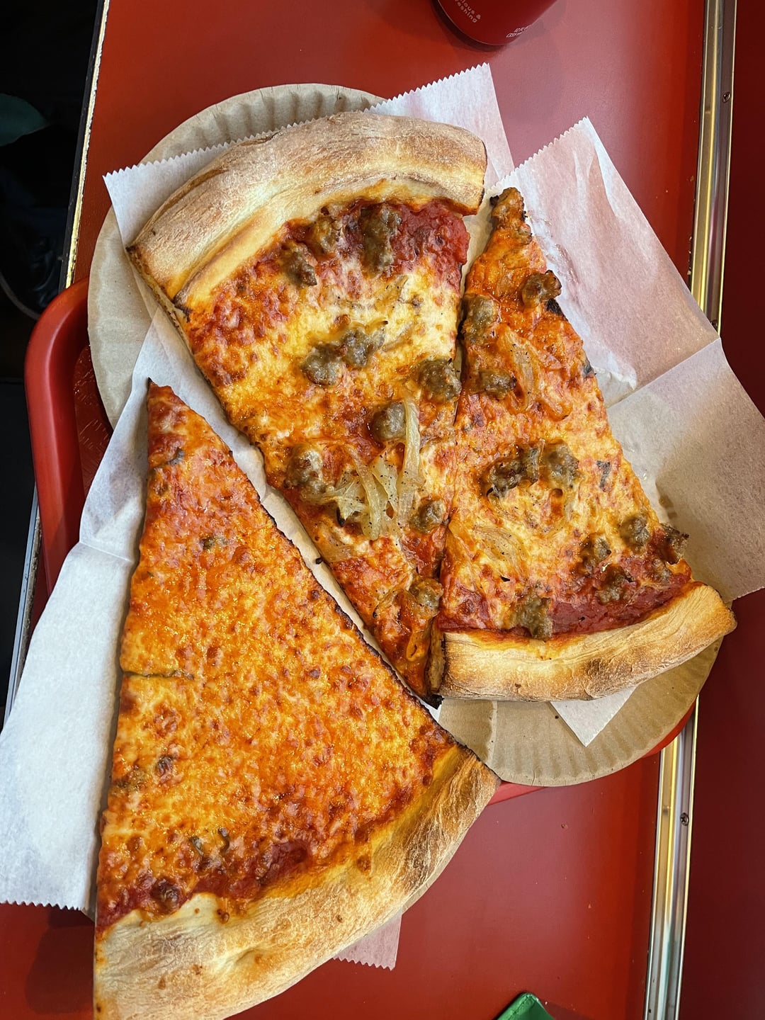 Should I have gone somewhere else? Cheese was amazing, sausage onion was pretty good. Different than pizza in Texas that’s for sure