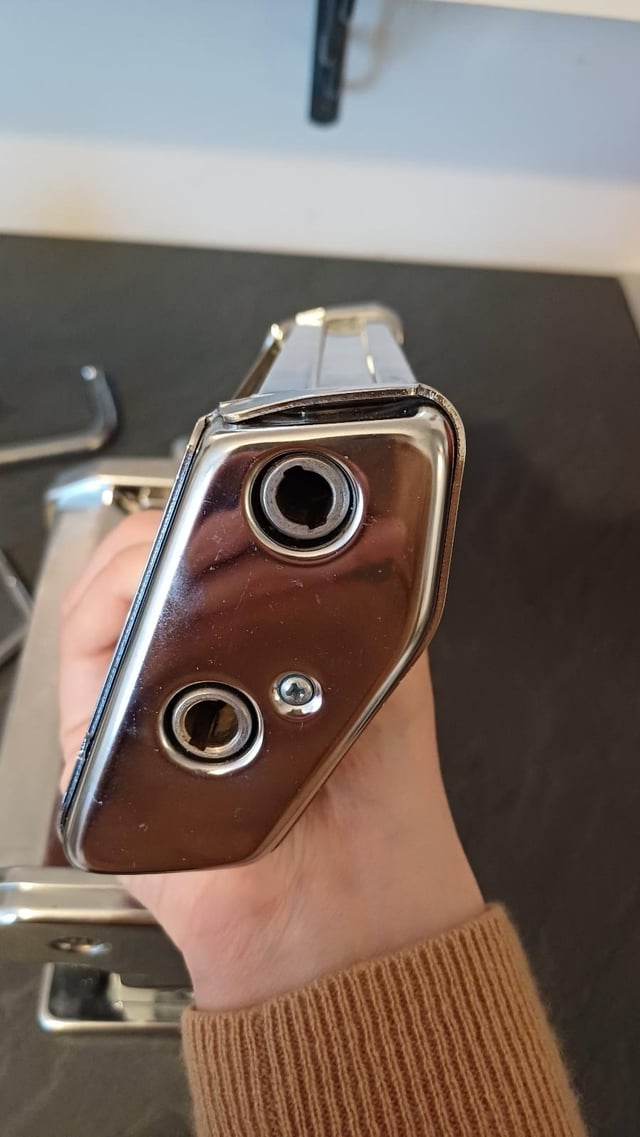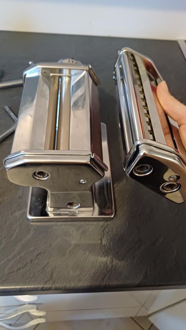 I don't seem to be able to put the pasta attachment (pic 2), is it bent (pic 3) or I am doing it wrong? It has been so long (and two moves) since the last time I made pasta that I can't remember… Thanks in advance!