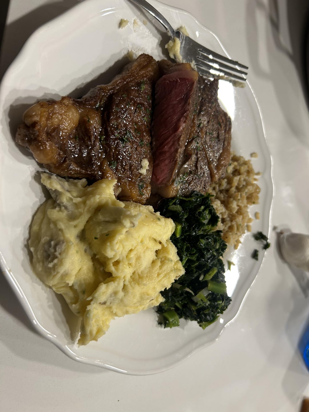 Look at that subtle off brown colouring. The tasteful thickness of it. Oh my god it even has a butter mark. Your spuds look class too. Good man yourself.