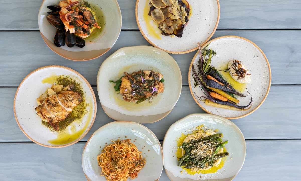 Non-seafood dishes include burrata, roast chicken and charred brassicas.