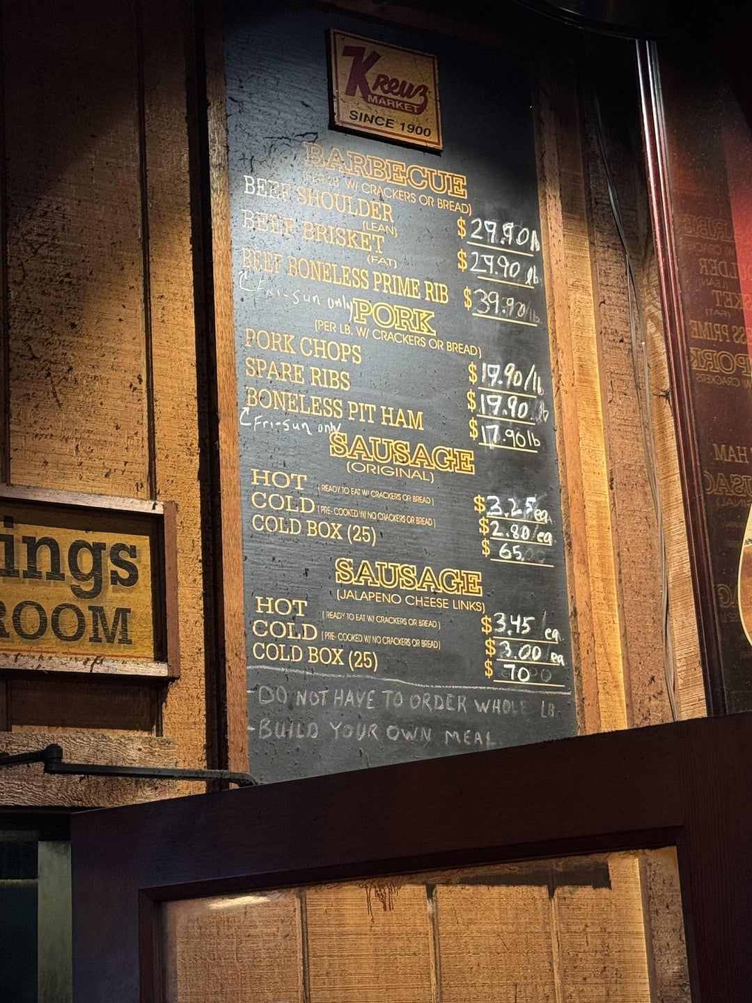 7. Places like Kreuz or Louie Mueller have an atmosphere that the craft bbq places won’t ever be able to replicate. That said, I was pretty disappointed with Kreuz when we went. My least favorite was the prime rib.