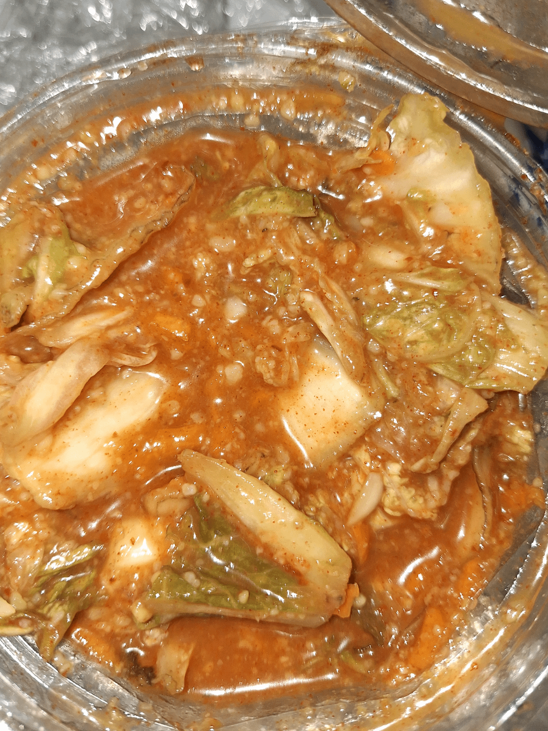 Older kimchi, not that that’s bad, just fermented longer is all. My mom would wait for kimchi to get this old so she could fry it. I think she thought it tasted better but idk.