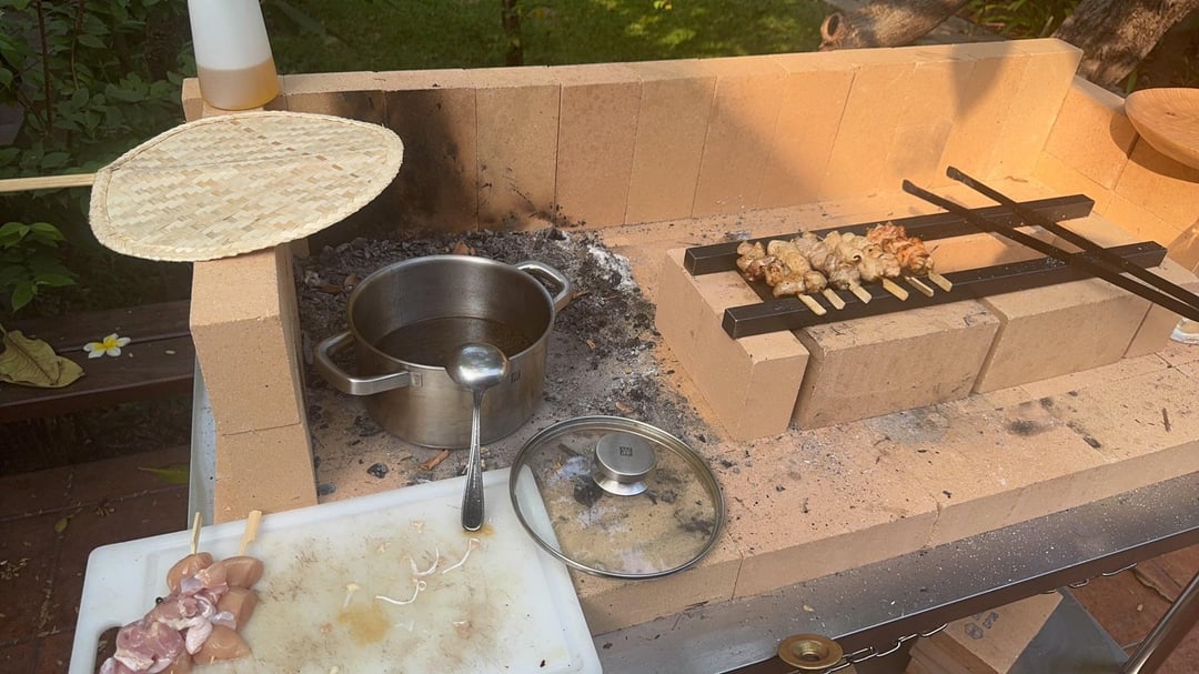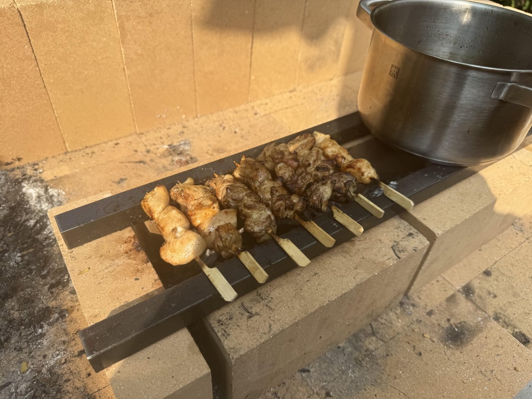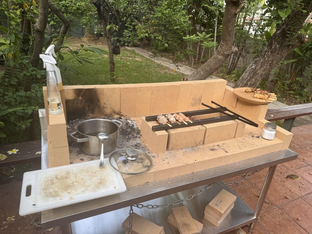 Bought a couple of iron bar for $20 and made a Yakitori grill out of refractory bricks. Pretty fun but it’s so hard to get the temperature up high. I guess that’s why they use expensive binchotan 🤔