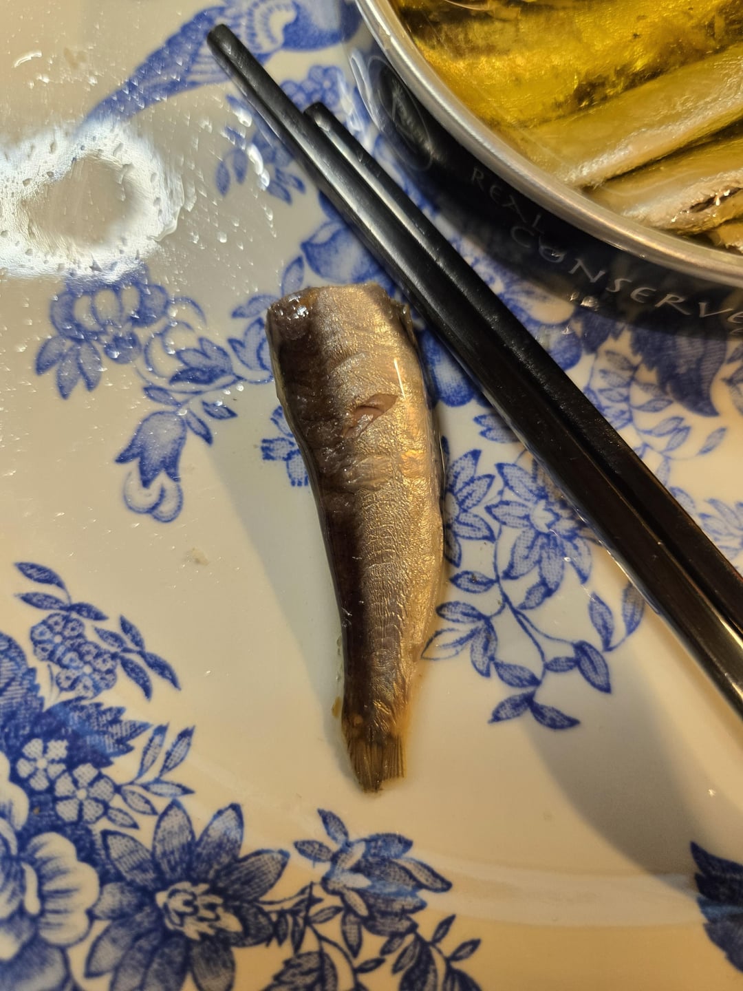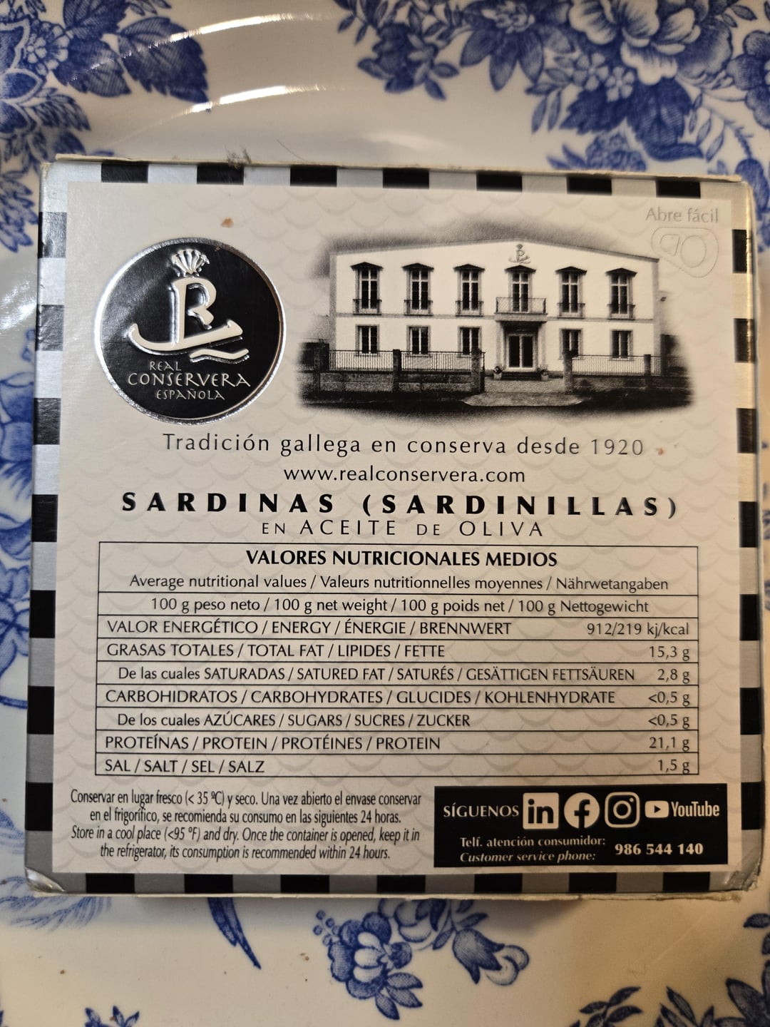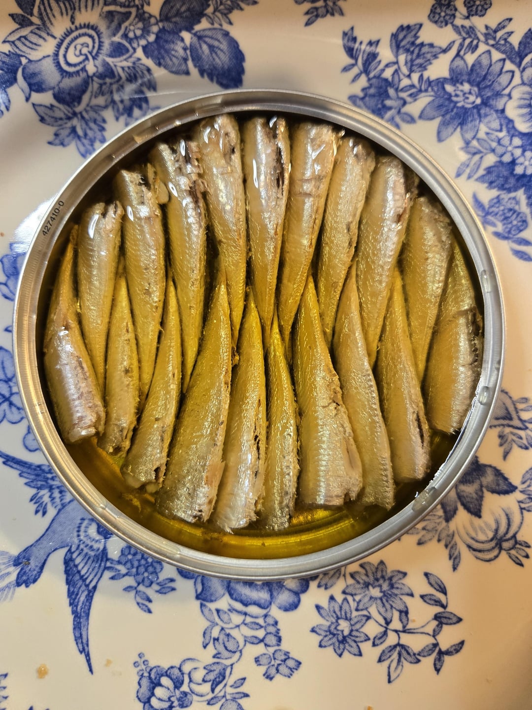 I have been saving this one for the right moment, and today was the day! This tin was ranked #3 in the world and it's not hard to see why. Tiny, dense, tender, meaty little darlings swimming in high quality Spanish olive oil, the kind that coats your lips (sopped up with a mini croissant). These are the best baby sardines I've had since the Conservas de Combados. The inspection tag under the fish was a new experience for me, anyone else ever see a tag in their tin? All in all, an experience I will remember fondly!