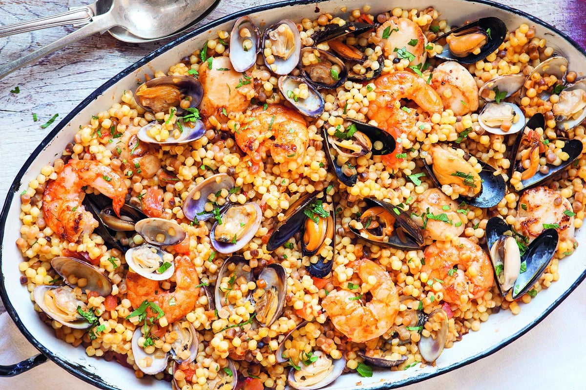 Seafood with saffron fregola