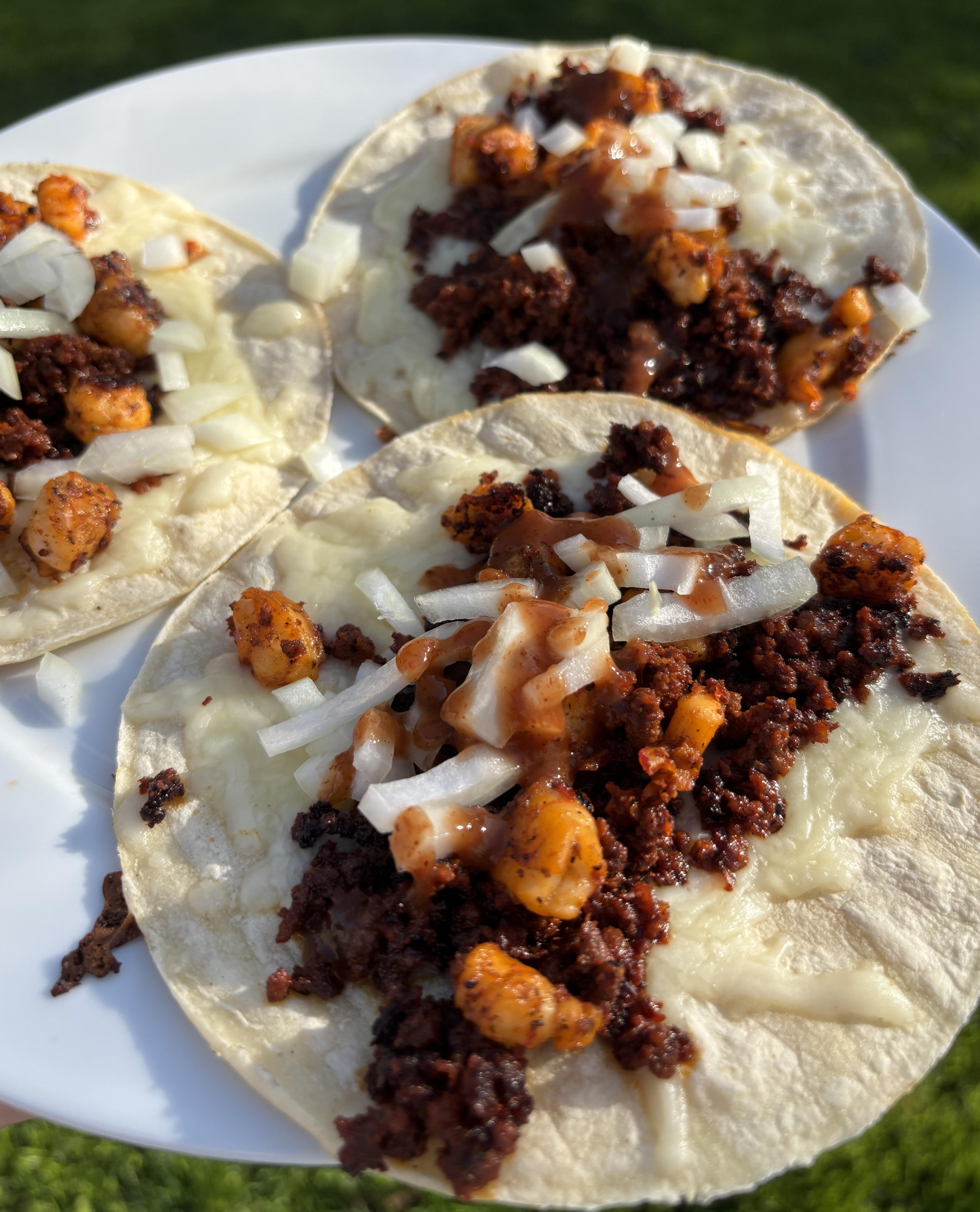 White corn tortilla, melted Oaxaca, chorizo, shrimp, bit of hot sauce and onion. Done on my griddle.by Constant_Carnivore Write A CommentYou must be logged in to post a comment.