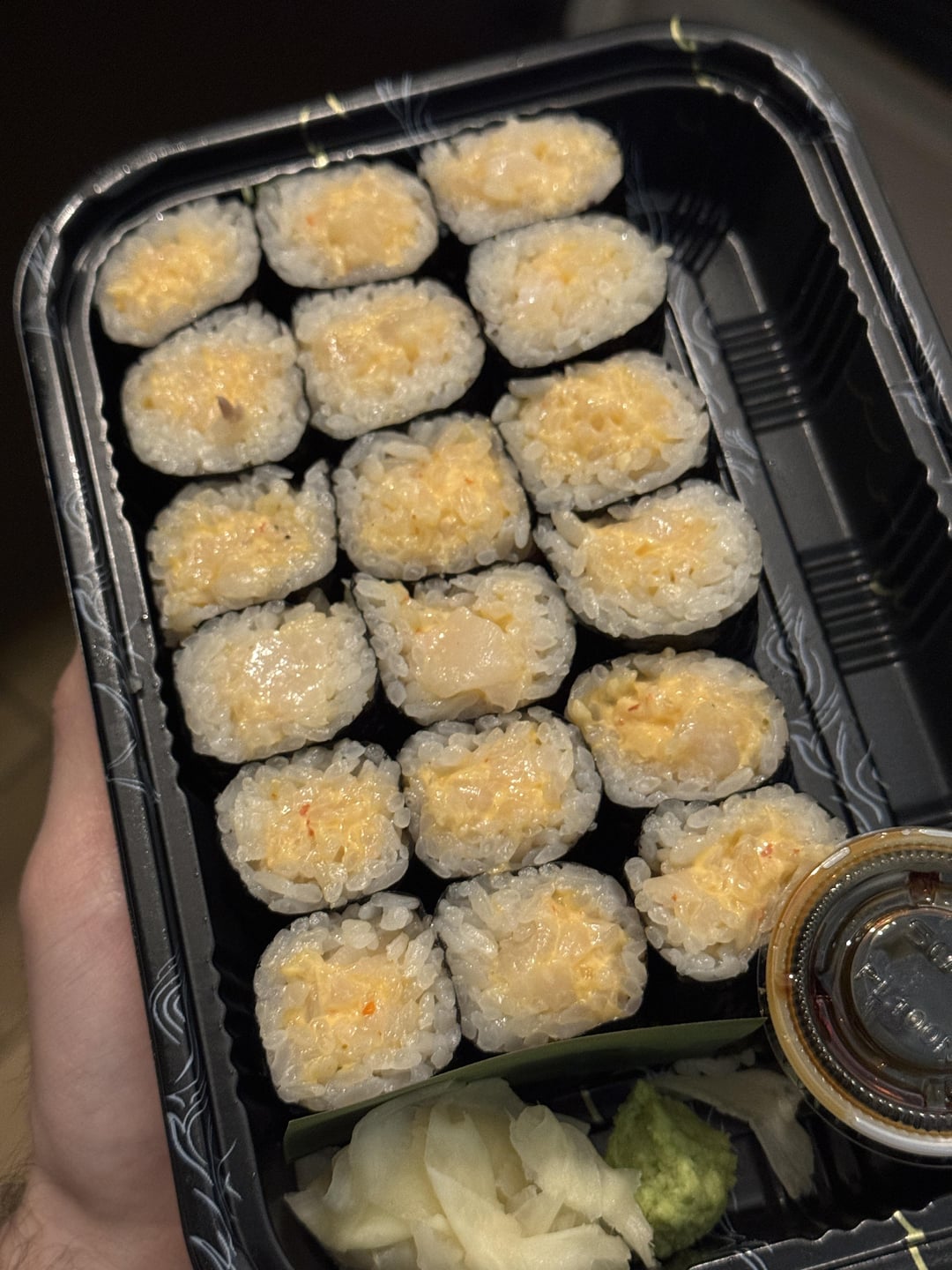 The rice is fucking wet in all of those rolls but the grains look so separated it looks undercooked. None of these pickles would say a bad word because it’s from a restaurant