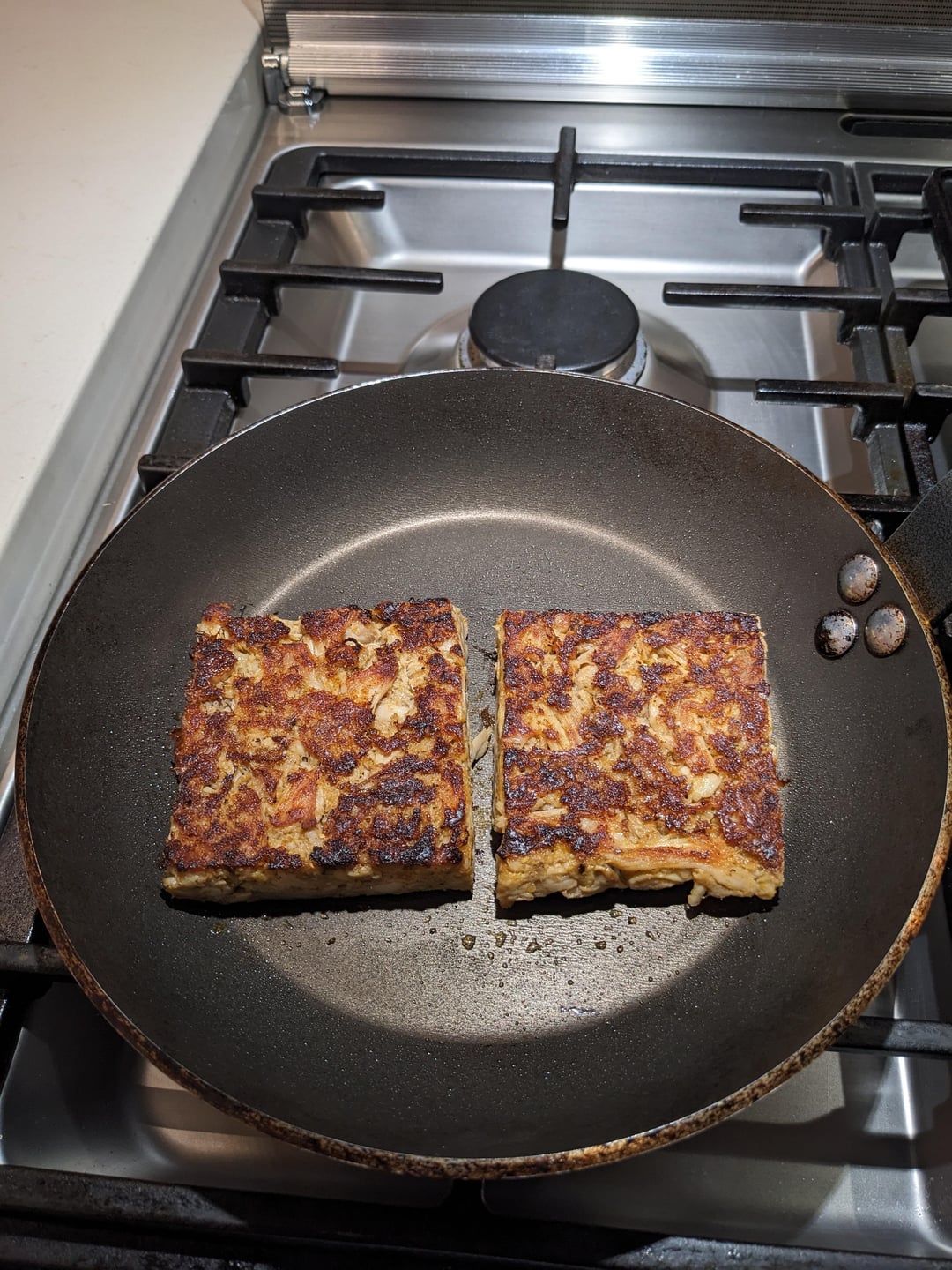I made pulled chicken and pressed it under weight overnight. It made it so much easier to handle and sear. Outside gets crispy and crunchy while inside stays very soft. think I'm onto something here.