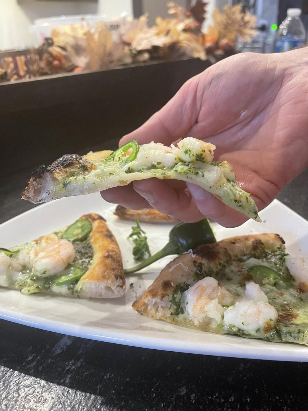 I bought a Sorrento Biscuit to try on my new gas grill. I installed a better thermometer and I can get the grill temp up to over 800 F. First 2 attempts. Dough was a 24hr cold ferment, Anna Napoletana 00 flour, 1 topped with Cento Crushed Tomatoes with a bit of basil, Grande Mozzerella, pepperoni, homemade Italian sausage and 1 with cilantro pesto, Grande Mozzarella, shrimp and jalapenos. Both sprinkled with grated Grana Padano after the bake. I covered the grill with ceramic insulation to achieve the temperatures I got. I need to preheat longer, the bottom didn't get enough heat but it was close.