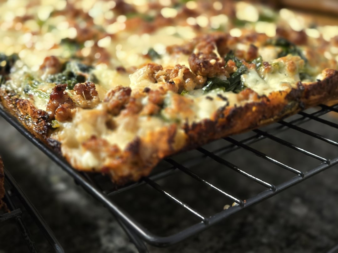 * Spicy rapini, fresh mozz and Italian sausage